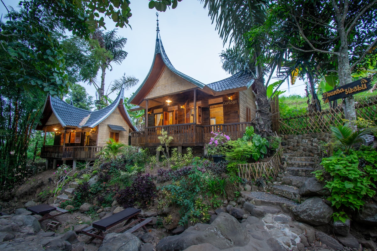 Experience a unique stay at Nuansa Sikabu Retreat! These exclusive wooden cabins are inspired by the iconic Rumah Gadang (Minangkabau traditional house). Nestled by a lush, rocky riverside, this Minang-style glamping offers traditional warmth combined with cozy, modern comfort. Enjoy magical evenings lit by warm fairy lights, surrounded by nature's sounds. Perfect for couples or small families seeking peace, coziness, and an authentic cultural escape.
