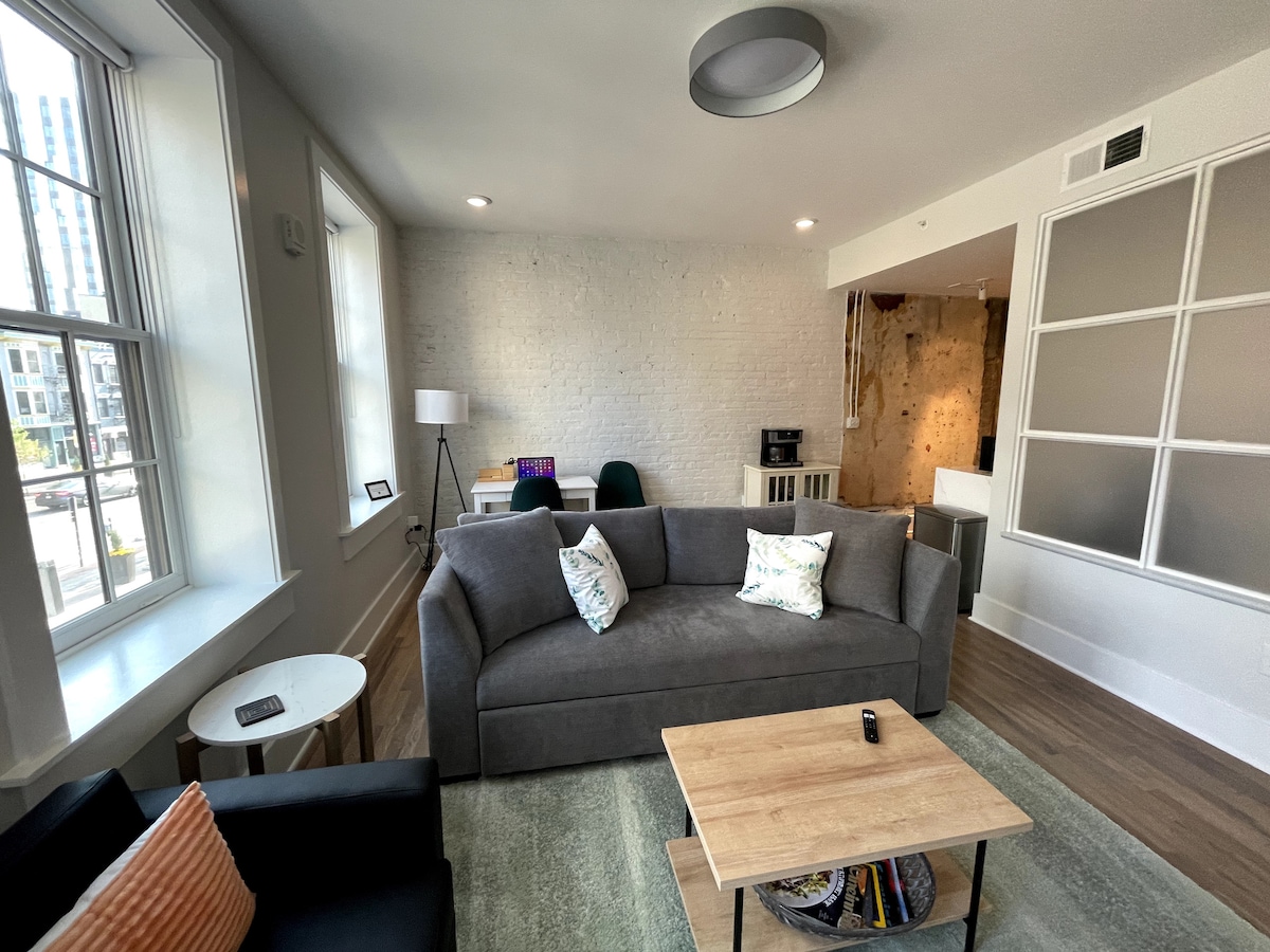 Welcome to our newly remodeled & charming centrally located apartment! As you step inside, be captivated by the exposed brick walls that add a touch of rustic elegance. The apartment boasts 20-foot ceilings, creating an open and airy atmosphere. Take advantage of the streetcar stop located just outside, ensuring seamless transportation to all major attractions then come home and relax in the plush king-size bed after a day of exploring the city. Book now and indulge in comfort and convenience!