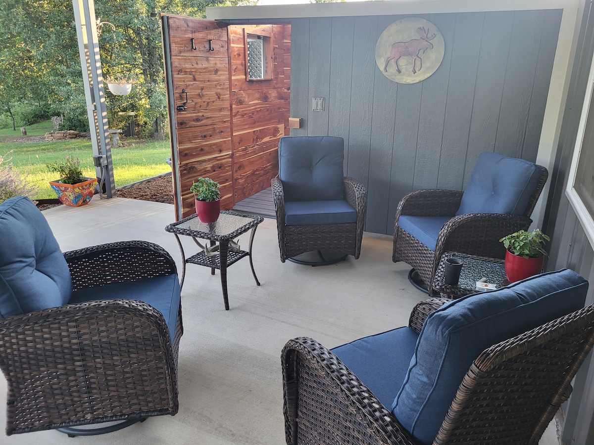 Each cottage has an open, spacious floor plan that includes a king-size bed, a fully equipped kitchen, with a Keurig coffee maker, a luxurious bathroom with large walk-in shower and stand alone bathtub, a comfy sofa with pull out bed and a cozy gas fireplace. The cottages are located just off Lover’s Lane. Take a stroll, check out a fishing pole and head over to the pond, or take our canoe out for a spin.