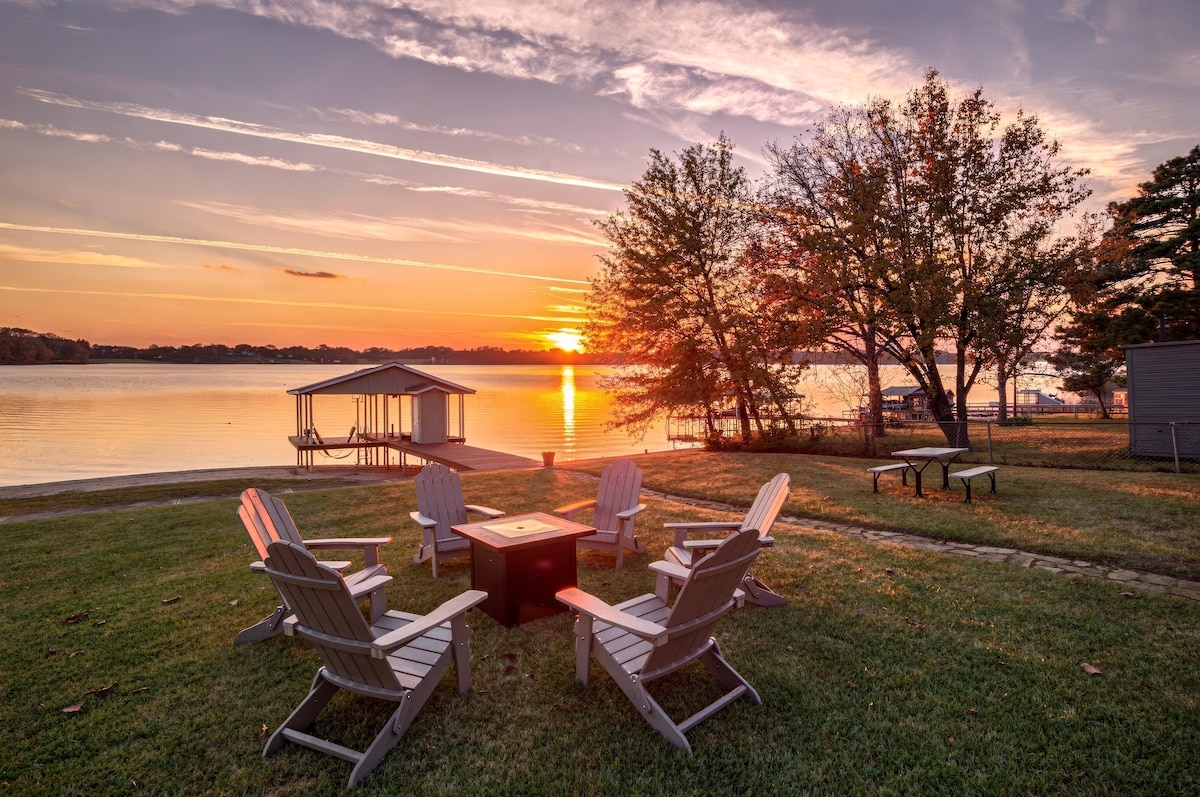 Experience lakeside living with sweeping open-water views from a wall of windows. Start your morning on the deck with sunrise coffee, spend the day kayaking or fishing from the private dock, and relax by the fire pit at night. Enjoy an open-concept layout, lake-view primary bedroom, double-oven kitchen, and fenced yard. Pet-friendly and only 1 hour from Dallas, with Canton Trade Days a short drive away.