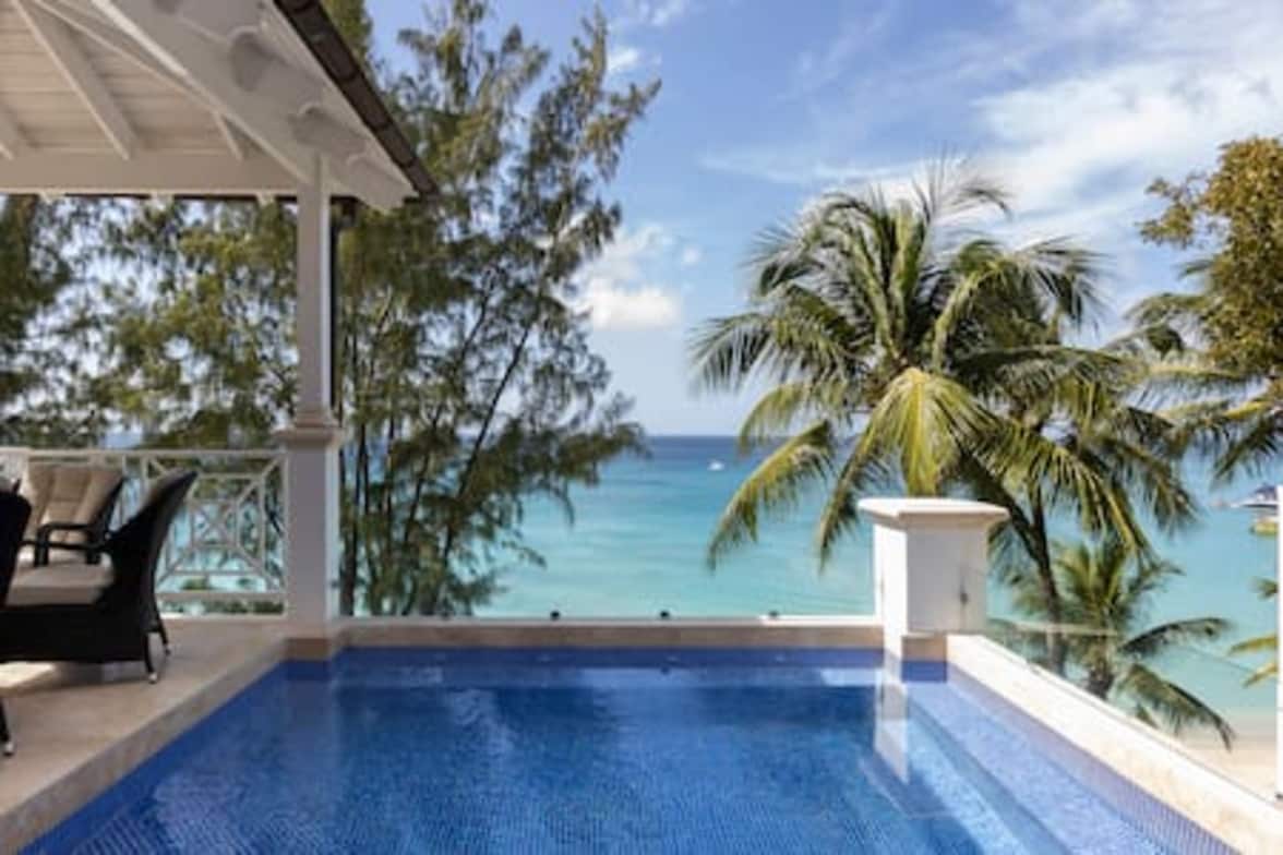 Sunset 104 is a luxurious 3-bedroom beachfront apartment on Barbados’ West Coast, offering stunning sea views, elegant coastal design, and seamless indoor-outdoor living. With a private plunge pool, direct beach access, and en-suite bedrooms, it combines privacy with comfort. Located in the prestigious Old Trees development, guests enjoy beach service, housekeeping, a pool, gym, and 24/7 security—perfect for a serene Caribbean escape.