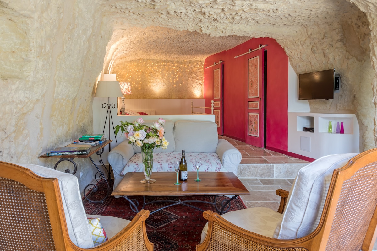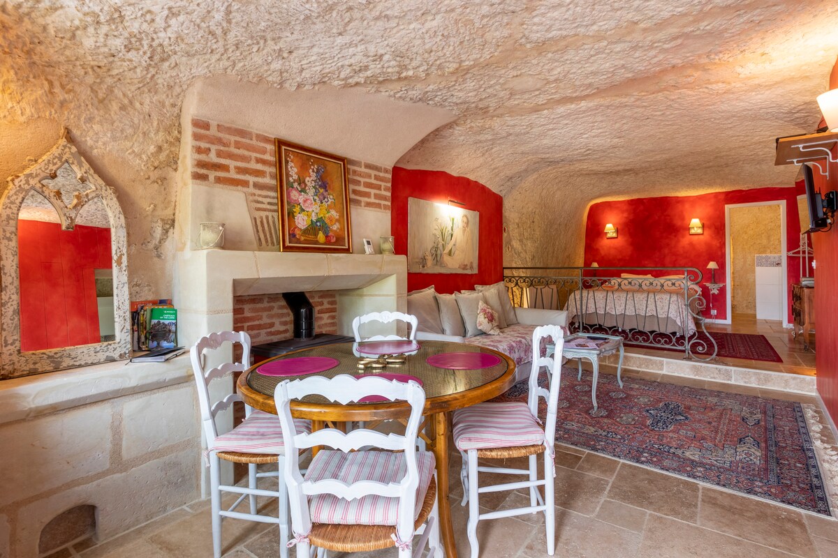 Ce logement est tout sauf ordinaire. Après avoir gravi quelques marches vous entrerez dans un espace de 84m² entièrement creusé dans la pierre de Tuffeau, célèbre pour son utilisation lors de la construction des plus grands châteaux.