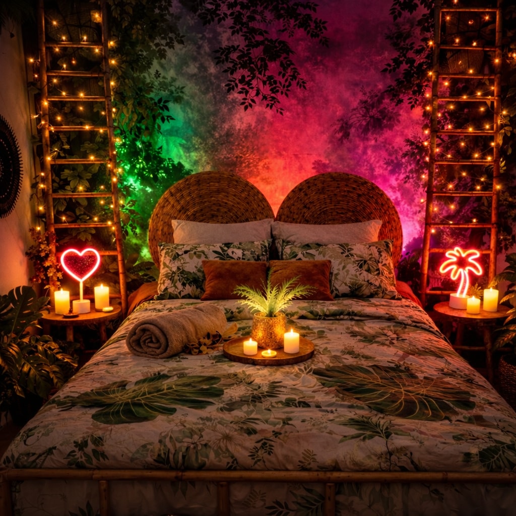 ✨ Découvrez le Mirage Tropical , une parenthèse raffinée au bord de la Loire 🌴. Profitez d’un Spa , Table de Massage d’une terrasse élégante et d’un espace jungle dépaysant pour vous évader. Amusez-vous autour du jeu de fléchettes, partagez un apéro exotique ou détendez-vous dans une atmosphère unique. Le soir venu, la chambre s’illumine de couleurs envoûtantes pour un moment chic et romantique 💖. Ici, chaque détail sublime votre séjour pour créer des souvenirs mémorables.🌴❤️❤️💕💕💕👄🫂❤️