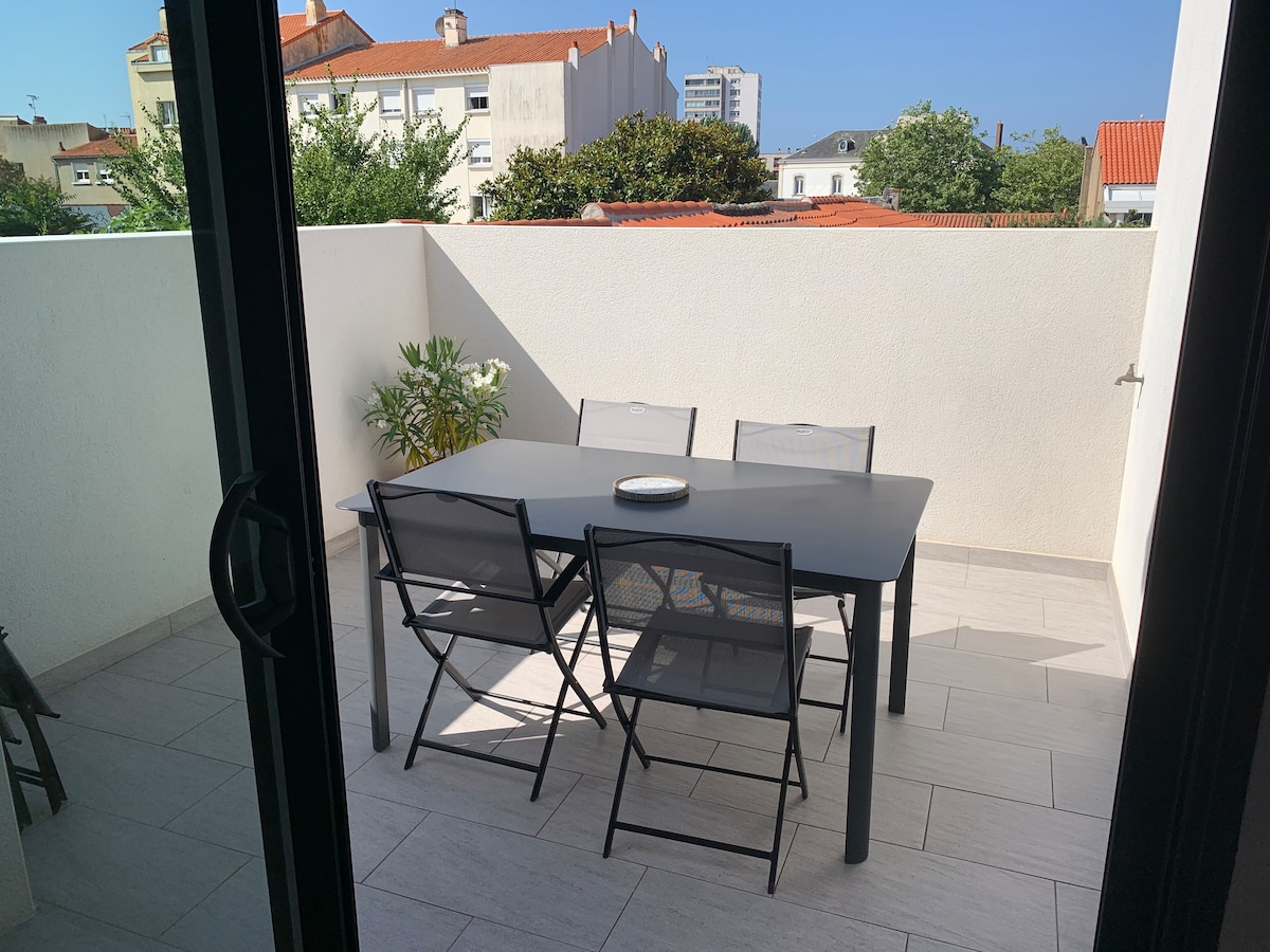 Bienvenue dans notre appartement neuf et lumineux de 80 m², situé à 5 mn à pied de la grande plage, du port de pêche, des commerces et du port de plaisance d'où part le Vendée Globe. L’accès du logement se fait par un escalier privatif qui dessert l’appartement à l’étage (porte sécurisée / interphone). LE STATIONNEMENT EST GRATUIT DANS LA RUE, tout se fait à pied… Le logement est tout équipé, parfait pour profiter d’un court ou moyen séjour de détente. Logement certifié et classé 2 étoiles.