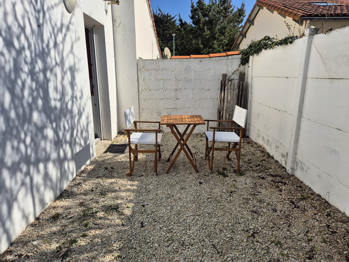 Dans le centre ville, à 3 minutes à pied de la plage et des commerces, vous disposerez de plusieurs places de parking privé. Une cour fermée avec table de jardin, chaises et fauteuils, une douche solaire . Au rdc, une chambre avec lavabo et rangements, buanderie : lave linge, étendage, WC, Etage : cuisine équipée, coin salon avec télé, salle à manger, 2 chambres , salle d'eau, balcon.