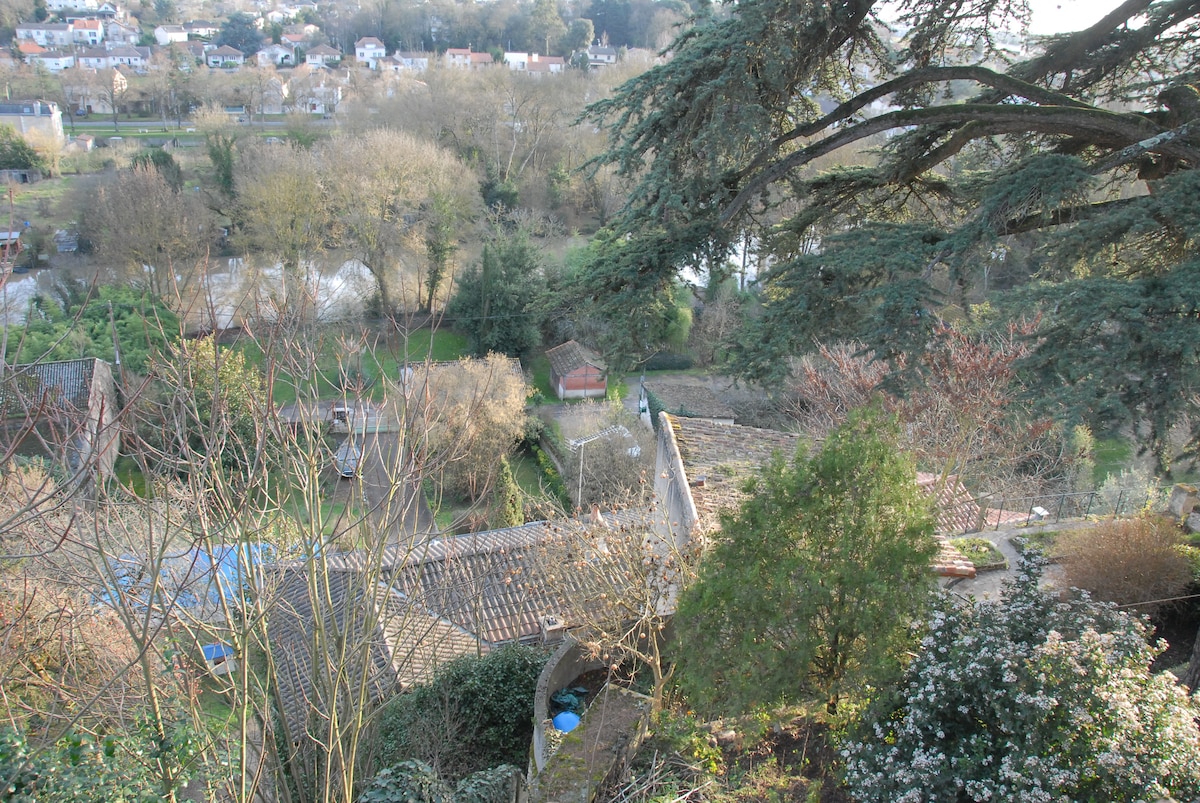Dans une ancienne école, nous avons installé un loft en plein cœur de Saumur. Donnant sur une cour arborée, vous pourrez profiter de 3 chambres (2 chambres adultes et 1 chambre pour 4 enfants), une grande pièce à vivre et une salle de bain. Vous aurez aussi accès à une salle de classe mitoyenne dans laquelle nous avons créé une piscine intérieure de 3mx3m, chauffée avec nage à contre-courant. Vous aurez la possibilité de garer 2 véhicules dans la cour.
