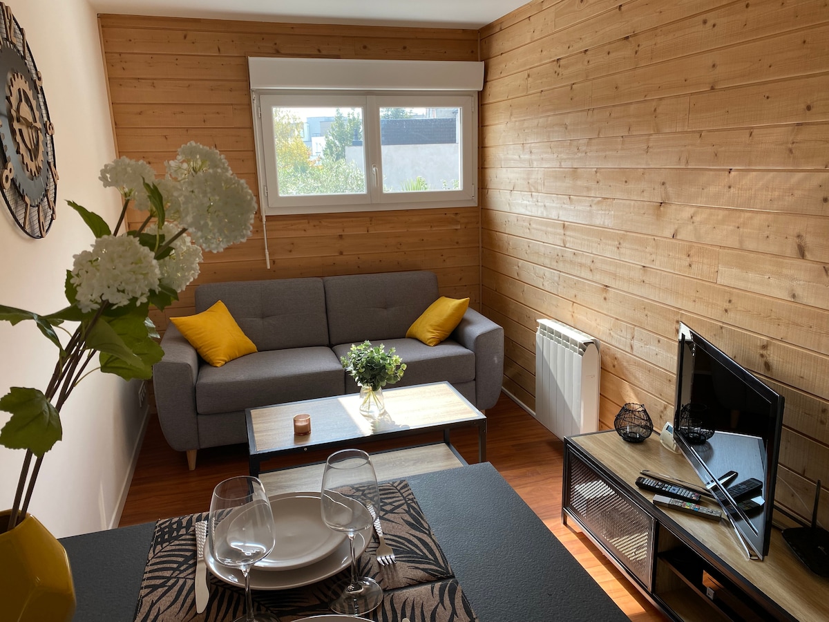 En campagne, entre Angers et Saumur, ce gîte peut accueillir jusqu'à 4 personnes. Vous serez à proximité des châteaux de la Loire, du Zoo de La Flèche (30mn), Zoo de Doué-La-Fontaine, Terra Botanica, le Puy du Fou (1h15). Ce logement de 50m2 en totale indépendance, dispose de son espace extérieur avec salon de jardin. 1 chambre (lit double) 1 grande pièce de vie avec canapé convertible télévision connectée, dvd, WIFI gratuit cuisine toute équipée Salle de bain WC lave-vaisselle lave-linge