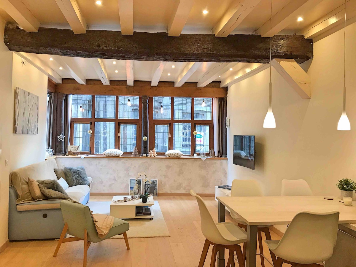 Ce joli appartement de charme « Chez Ann-Kathrin » classé 3 étoiles, situé idéalement en plein coeur du centre historique de la magnifique ville de Dinan, vous séduira à coup sûr par son caractère et son authenticité. L’appartement allie confort, histoire & modernité et vous bénéficierez de sa situation géographique exceptionnelle avec une vue imprenable. C’est un appartement atypique, spacieux & lumineux qui vous invite à la détente après des jolies balades dans les ruelles du centre ville.