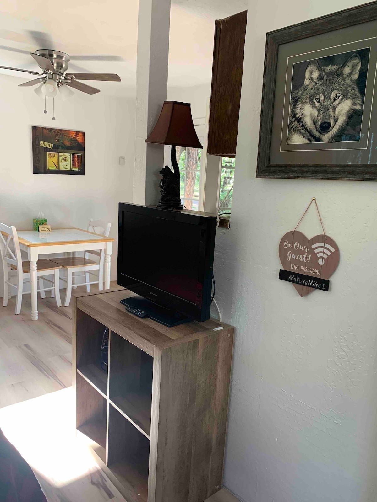 Spend days exploring Tonto Natural Bridge State Park or the Mogollon Rim! 🌄 Then head back to your cabin, open the garage door in the dining area, and enjoy a beautiful Arizona sunset. This Payson cabin is located directly on the East Verde River and you will hear the soothing flow of water from the deck. Step directly onto hiking trails or go fishing from your backyard. 🐟 Vinyl record player and cozy interior. This peaceful retreat will be the perfect spot to get some much-needed relaxation.