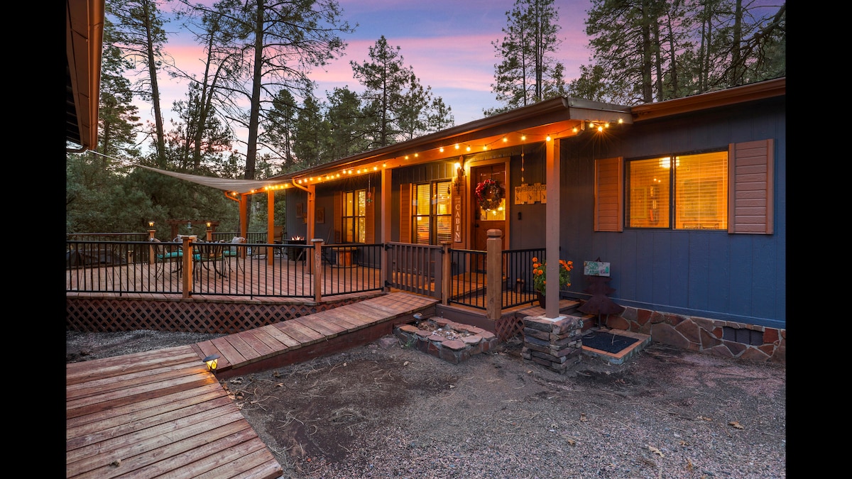 Spend days exploring Tonto Natural Bridge State Park or the Mogollon Rim! 🌄 Then head back to your cabin, open the garage door in the dining area, and enjoy a beautiful Arizona sunset. This Payson cabin is located directly on the East Verde River and you will hear the soothing flow of water from the deck. Step directly onto hiking trails or go fishing from your backyard. 🐟 Vinyl record player and cozy interior. This peaceful retreat will be the perfect spot to get some much-needed relaxation.