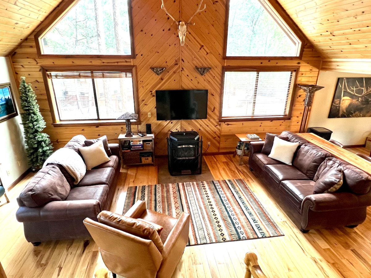 Rim View: Where the only reason to leave is so you can come back again. Experience breathtaking views from every window and the wrap-around deck while enjoying the comforts of home. 3BR, 2BA and plenty of outdoor space make Rim View perfect for up to 6 people. Make dinner in the gourmet kitchen or grill on the patio while watching the sun set over the Rim. You can drive down the mountain, make one left turn to all Pine has to offer. Pine is an easy drive and less than 2 hours from the Valley.