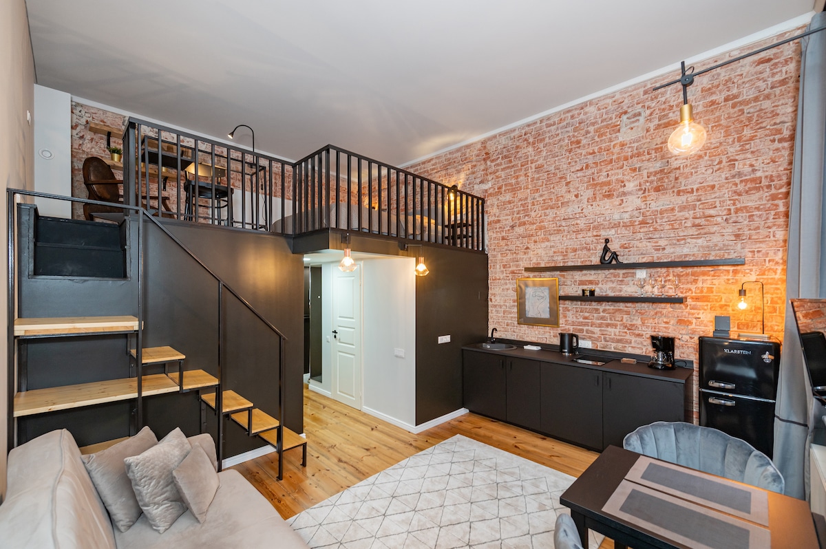 Great location in authentic and unique building in city center! Couple minutes away from the main pedestrian street of Kaunas called "Laisvės alėja" and St. Michael the Archangel's Church. Fully equipped one bedroom loft with a bathroom. Free private parking available on premises. Ideal for couples, solo adventurers and business travellers.
