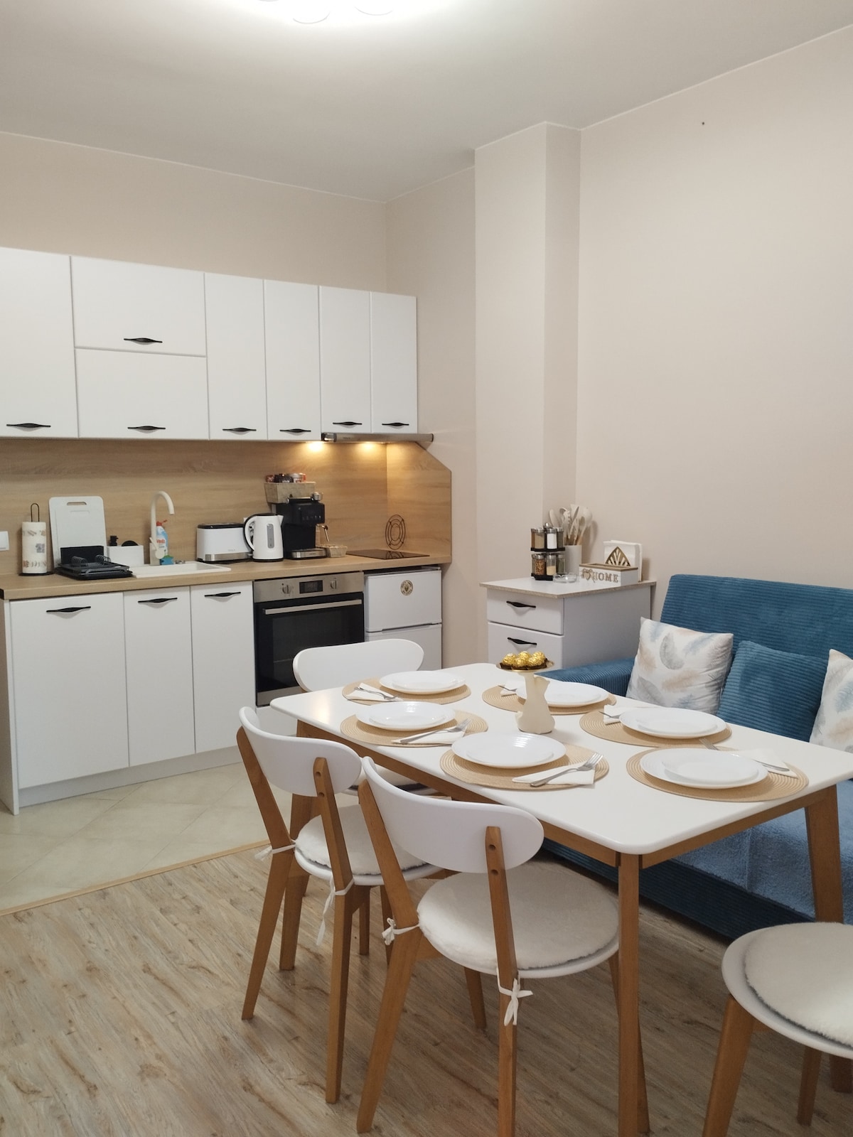 Заповядайте в нашия апартамент направен с много желание и любов за Вас! В него ще намерите всичко необходимо, за Вашия приятен престой. Намира се в нов жилищен комплекс с асансьор в близост до Lidl, денонощен супермаркет, ресторанти , кафенета и аптеки на 10мин. пешаходно разстояние от идеалния център на града.Свободно паркиране. Апартаментът разполага с напълно оборудвана кухня, телевизор с включени HBO, Netflix, и пълен пакет цифрова телевизия и интернет. Разполага също и с пералня и сушилня.