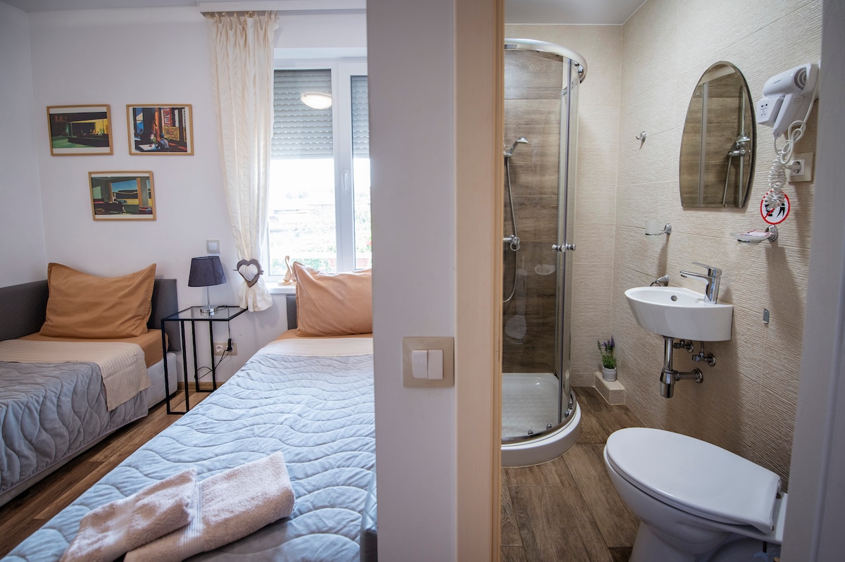Guesthouse "Kalendarovi" in Vetren Dol, Pazardzhik Enjoy a comfortable stay in our guesthouse, featuring 4 cozy double rooms, each with private entrances, bathrooms, and a WC. Guests can access a heated outdoor pool for free, a gathering area, and enjoy stunning mountain views, just 2 minutes by car. The entire house accommodates up to 10 guests (8+2), ideal for families, groups, or special occasions.