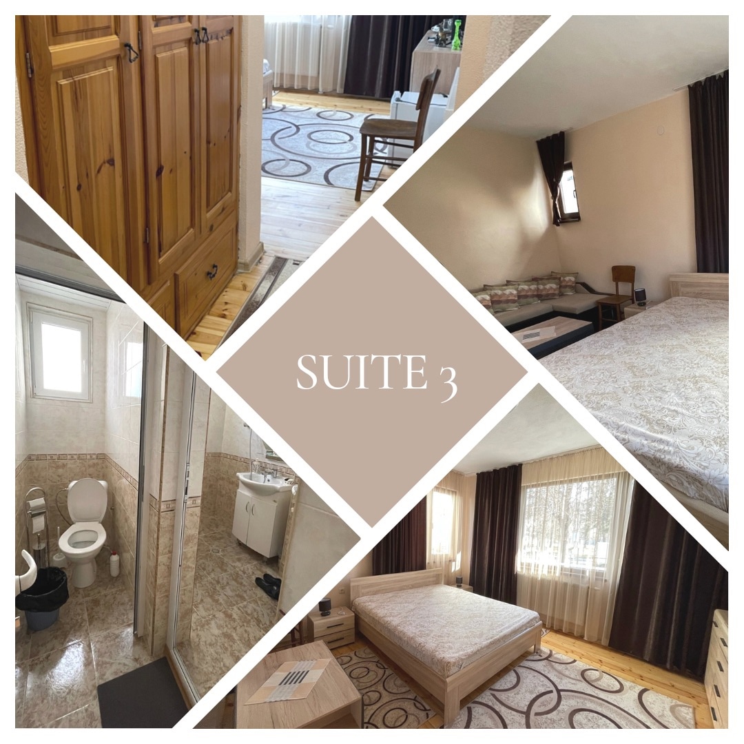Просторен етаж с живописна гледка към планината и града. Разполагаме с една спалня с голямо удобно двойно легло, детска стая с две единични легла и обособено работно място, хол с камина, трапезария и функционална кухня, баня с хидромасажна вана, тераса с панорамна гледка. Подходящо за 4 човека.