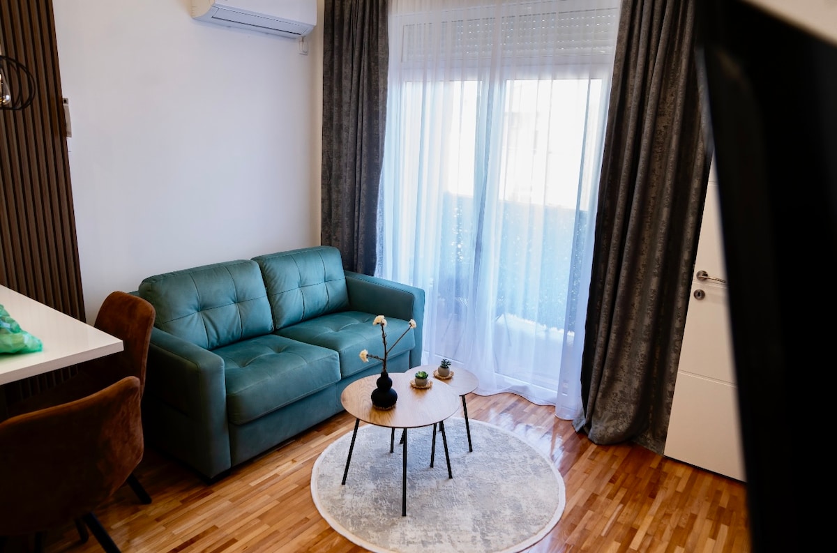 A cozy apartment decorated with lots of flowers and plants, spacious and you will enjoy easy access to everything from this centrally located place. The apartment is only 5 minutes away from the main pedestrian street and all of the main cafes and restaurants and just 2 minutes away from the main bus station. It is warm and cozy with 1 separate room, spacious living room, dining room, a fully equipped kitchen, a bathroom and 2 balconies. From 1 balcony you have a great view of the neighborhood.