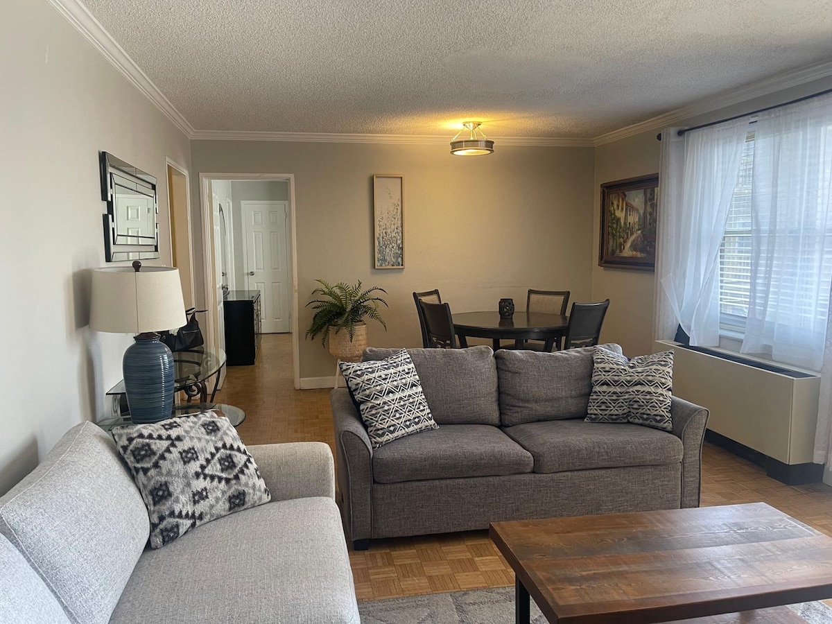 Perfect home base for exploring Atlanta! This spacious flat has all the amenities you need to make your stay enjoyable. It's located within a few blocks of the World of Coca-Cola, Georgia Aquarium, CNN, SkyView Atlanta, Centennial Olympic Park, Children's Museum, and other attractions. Only a 20-minute walk to Mercedes-Benz Stadium and State Farm Arena. The building has a 24-hour concierge and a large laundry room. Parking (provided) is in the open lot next door to the building.