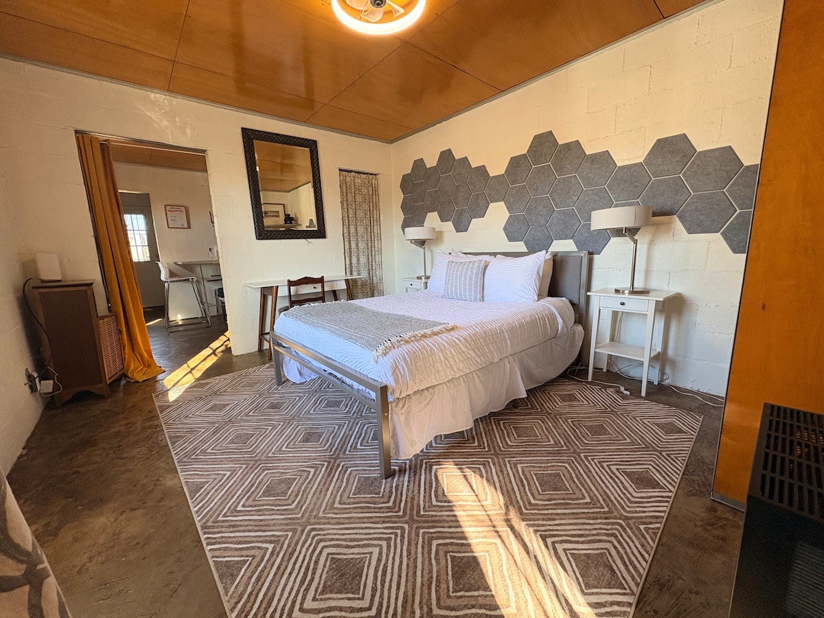 This eclectic postmodern studio is centrally-located in a residential neighborhood a 10 minute walk to Piedmont Park and all the restaurants, bars, and shops that Virginia Highland has to offer. Designed by local artists that have been featured by HGTV and appointed with a mix of trendy designer pieces and vintage finds, this space is a creative's perfect hideaway. The space is accessed through a beautiful backyard that makes it feel tucked away for a cozy and comfortable stay.