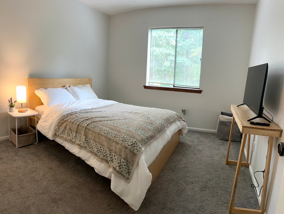 欢迎来到亚城Lyn的联排别墅独立房 1. 宽敞布局:两间卧室,每间都有独立卫生间,配备电视。楼下备有折叠沙发床,方便第五位客人使用。 2. 优越位置:位于乔治亚州诺克罗斯。靠近主城区,距离Duluth 商业区很近,去往大中华超市7分钟车程,周边各式餐厅和购物场所林立,居住体验丰富。既享受安静的郊区生活又交通便利,距离85高速101出口仅2分钟车程。 3. 丰富的周边景点: •亚特兰大植物园(Atlanta Botanical Garden):车程30分钟,有各类珍稀植物,适合放松心情和亲近自然。 •斯通山公园(Stone Mountain Park):壮观的石刻山景,提供徒步旅行、野餐及缆车观光体验,是户外爱好者的天堂。 •乔治亚水族馆(Georgia Aquarium):作为世界上最大的水族馆之一,尤其适合小朋友参观。 •奥特莱斯购物中心(Tanger Outlets):知名品牌汇集,体验物美价廉的购物乐趣。附近还可户外活动,如钓鱼等。 4. 现代化设施:配备高速Wi-Fi、全套厨房设备、洗衣和烘干机等,Google Nest恒温器全年舒适,轻松管理中央空调、照明等。