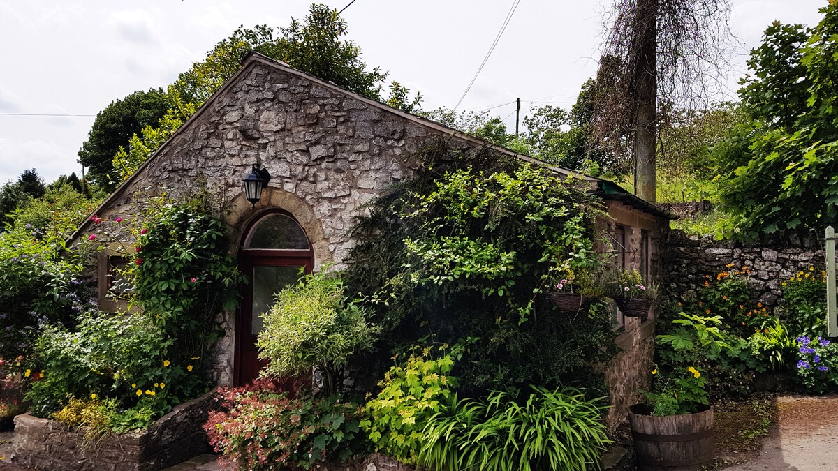 Chalet in the grounds of a large garden in the beautiful Peak District village of Youlgrave (good pubs & shops). Spectacular walks on doorstep. My mother was Swiss German and she had a large greenhouse made into the Chalet in 1992. In 2017 we fully renovated this quirky building. Easy parking, twin beds with new high quality firm memory foam mattresses in 2020, no smoking, ONE dog friendly. Outside seating infrared sauna is available at extra cost