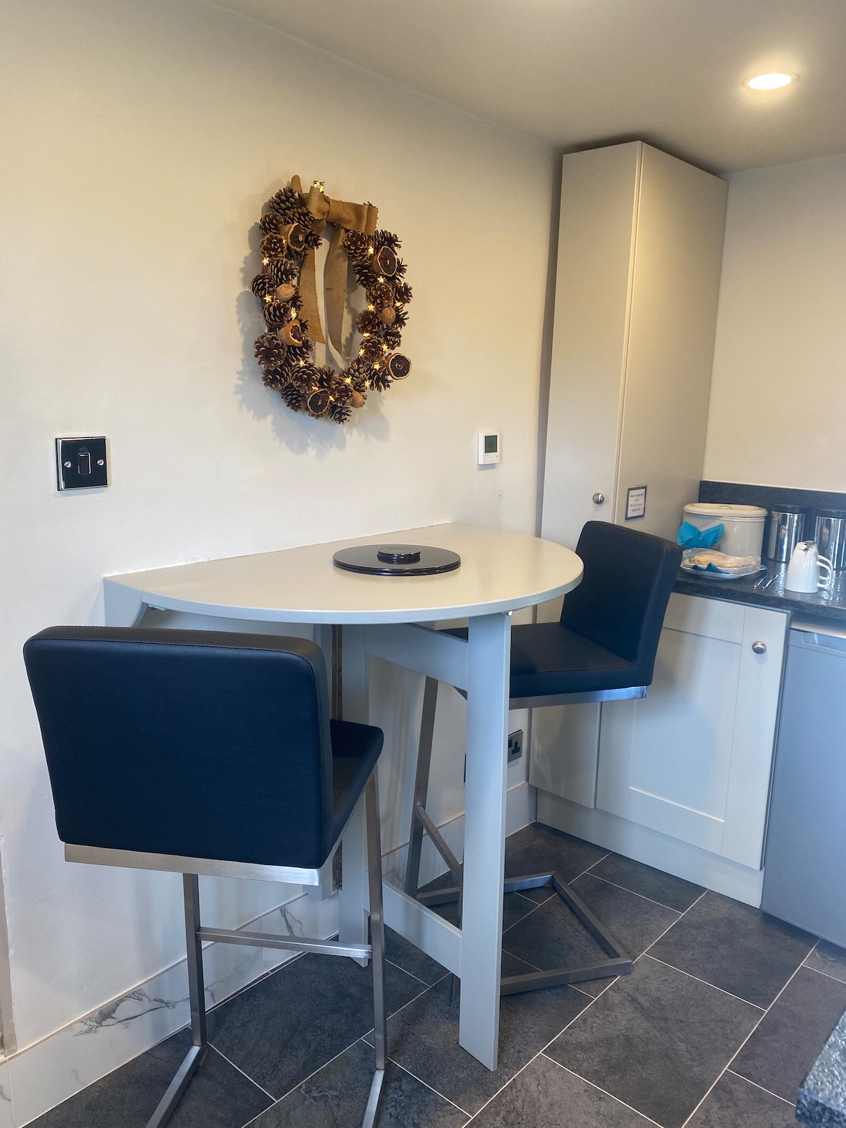 Kick off your walking boots, wash down your bike or just park up the car, this freshly converted kennels is the place to relax for a few days. Peaceful and away from it all but close enough to explore the beauty of the Peak District and Chatsworth House. Matlock is a couple of miles away with restaurants, shops and amenities. You can start exploring from the door step; we can help with guides, directions and recommendations. The room can be configured as a luxury Super King or twin beds.