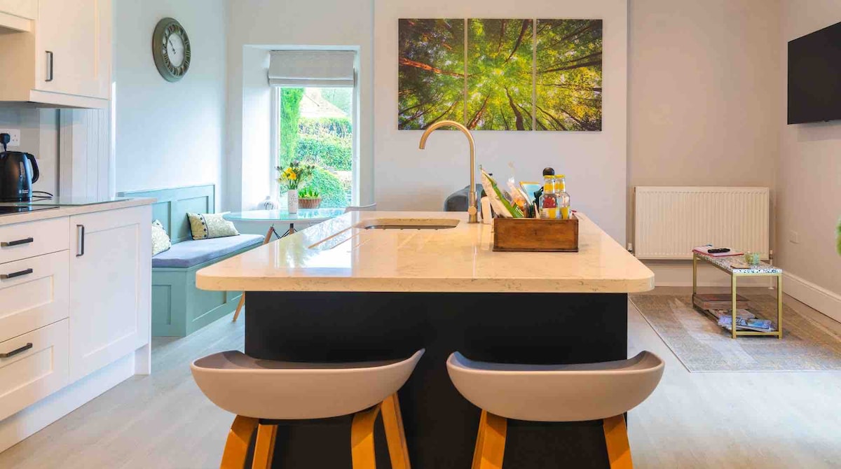 This two bed cottage is in an idyllic rural location with breath-taking views. Walk through fields onto a footpath down to the picturesque village of Ashford-in-the-Water or uphill to the drama of Monsal Head. *Please note - bathroom refurbishment (completed 1st March 2026) The Coach House will still offer one full family bathroom for guests to share (with sink, loo, shower-over-bath). The new en-suite ‘dressing room’ will contain a sink, toilet and vanity area but no longer a separate shower.