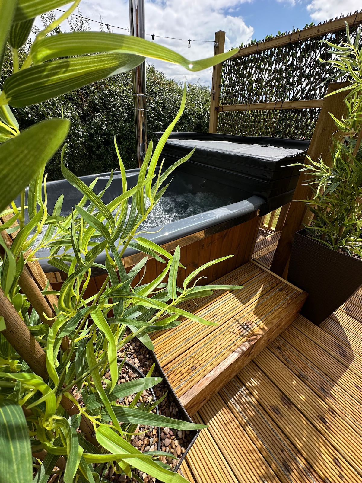 Daisy pod. -带燃烧木材的热水浴缸,允许携带宠物入住