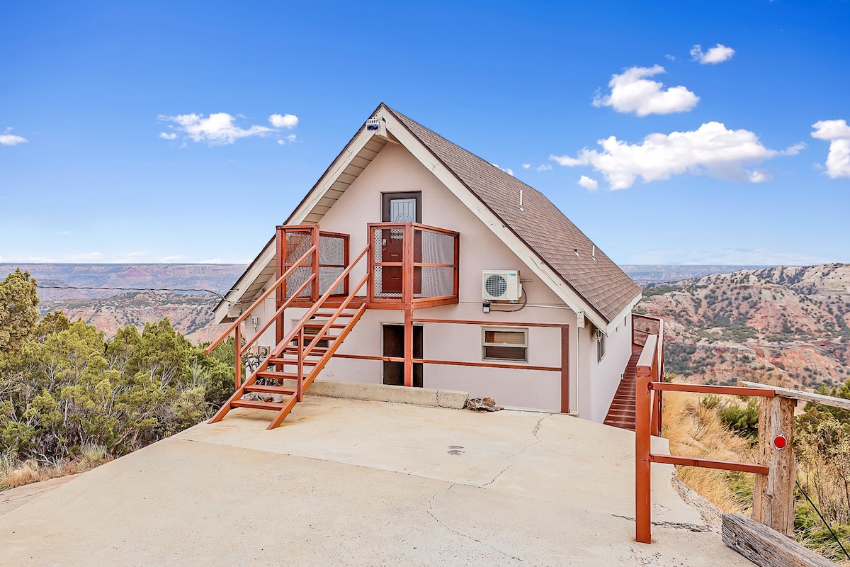 RARE FIND AT PALO DURO CANYON! FULL BREAKFAST, COMPLETE WITH MIMOSAS! Lots of amenities you won’t get anywhere else! Great for remote workers. Spacious cabin on 6.5 secluded acres. Sleeps 4, but 8 IF you also rent the other cabin on the property (The Hideout at a Palo Duro Canyon- Rider’s Roost). There is no other luxury cabin closer to Palo Duro Canyon! The only rental in the area with a fishing pond, horses, covered parking and screened porches. Your money supports handicapped horses!