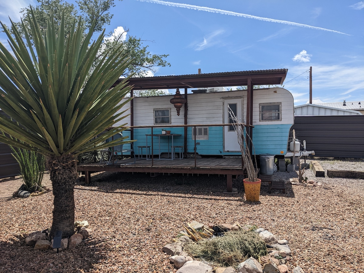 Fully renovated 1979 Songbird travel trailer in beautiful Fort Davis, Texas. Located in the center of town within walking distance to shops and restaurants; close to historic Fort Davis National Historic Site; 20 minutes to Marfa, Alpine, and the McDonald Observatory; 40 minutes to Balmorhea and Valentine; and an hour and a half away from Big Bend National Park. Enjoy our mild weather and night time stargazing from the Songbird's large deck.