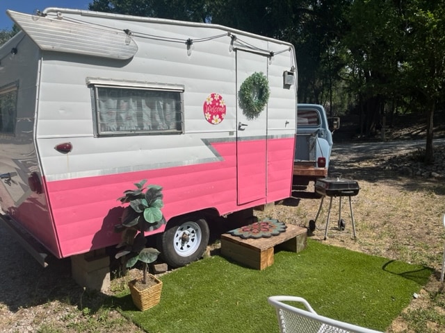 Glamping in rural Ruidoso. Campfires, Hiking, 420 friendly outdoors. This is a 32' travel trailer. Updated queen mattress, small twin bed and a regular twin size bed. BBQ grill, campfires, and beautiful landscaping. Walking trails and access to the Lincoln National Forest for hiking. Reviewed guests only are considered for booking. Please read the entire listing and the listing house rules before requesting a stay.