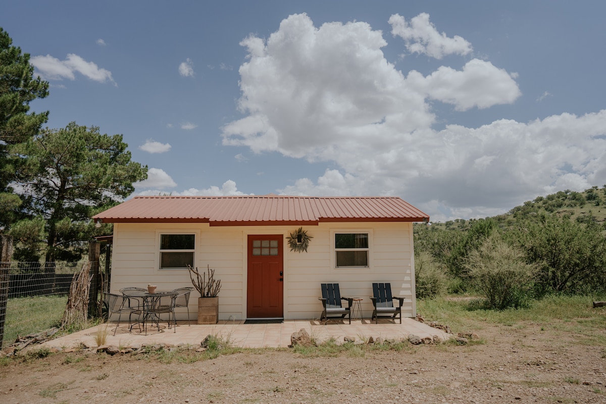 (No pets) Choose silence, solitude in our 12'x14' AIR CONDITIONED furnished hut, with a picture window view of Mesa; bed, desk, rocking chair, kitchenette. (1 guest only) and Wi-Fi. Space dedicated for meditation, prayer, writing. Private shower 90 steps away, inside main house. Hiking trail minutes away. Vaccination recommended. (Note: our second retreat space, inside main house, has private bath, kitchen use, library and LR.)