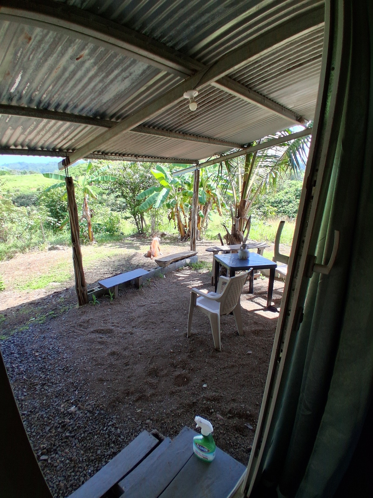 It is a cozy one-bedroom unit, with a closet, a bathroom with separated toilet area, a porch and a rancho. Nestled amidst the serene hills of Canas, the property offers a tranquil retreat with a picturesque ocean view. Wake up to the enchanting melodies of howler monkeys and local birds, immersing yourself in the beauty of nature every morning. While the cabana doesn’t have its own kitchenette, fret not! You’ll have access to a nearby fully equipped community kitchen, shared between 2-3 people.