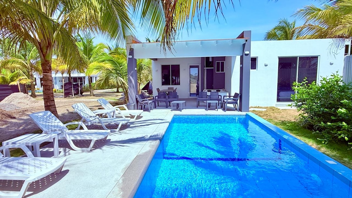🌊 Villa frente al mar en Cañaveral, Manabí. A solo 4h de Quito, ideal para 10 personas. Nuestra casa tiene 17 años sin problemas de seguridad y la cuidamos con esmero pese al clima costero. Cuenta con 3 habitaciones (Cama King), 2 baños, cocina equipada, aire acondicionado, internet de 120 megas, piscina, terraza con vista al mar, parqueo para 5 autos, sábanas de hotel, almohadas memory foam y seguridad 24/7. ¡Aceptamos a tu perrito! Servicio de cocina y limpieza disponible. ¡Reserva ya!
