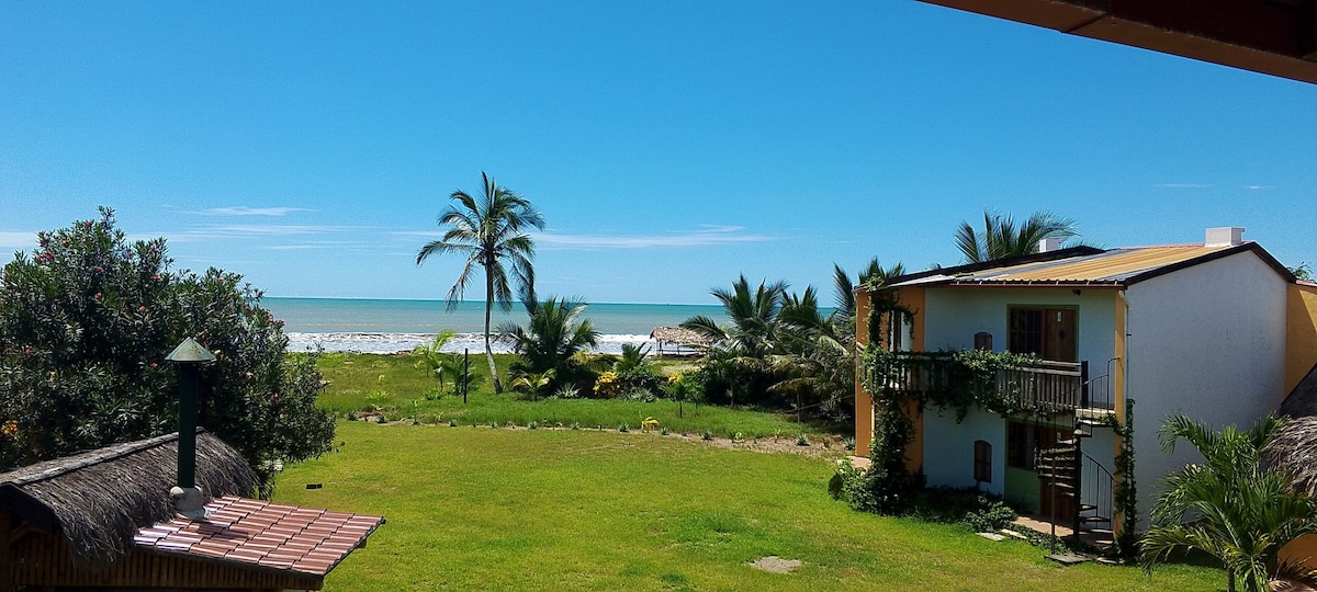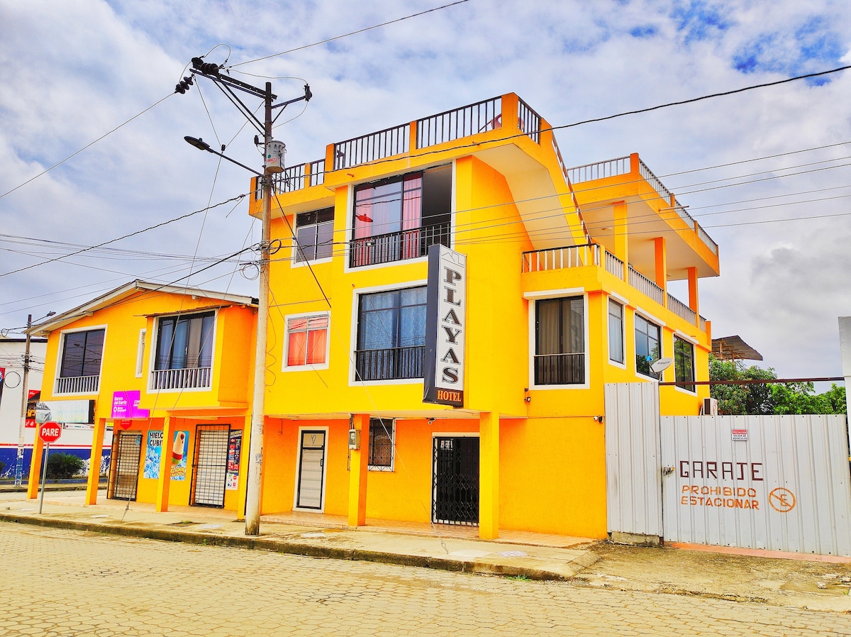 Las habitaciones están dentro del hotel La Playa Lodge, complejo que está frente al mar, ubicado a 1 km de la población de Cojimíes y 20 minutos de Pedernales. Tenemos acceso directo a la playa, las habitaciones tienen aire acondicionado, TV cable, baño privado con ducha de agua caliente. Contamos con piscina, parqueadero y restaurante. El WIFI es gratis y está en el área del restaurante, no tenemos WIFI en las habitaciones. La hora de Check in 14h00 y hora de Check out 12h00