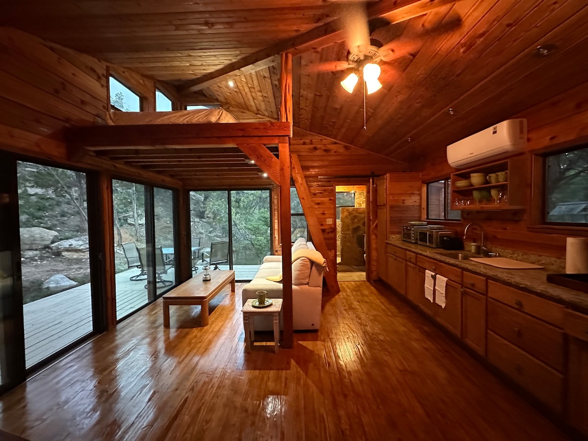 Come stay at our cabin located outside the charming Dripping Springs, TX! Creekside Casita is the perfect place to enjoy a quiet and serene stay. The cabin is located on 10 acres of property and only 10 minutes away from the Hamilton Pool Preserve and Milton Reimers Ranch Park. Guests are welcome to enjoy the creek that runs seasonally through our property. Whether a sunrise or sunset the hill country views are breathtaking! We are so excited to host your next stay at the Creekside Casita!
