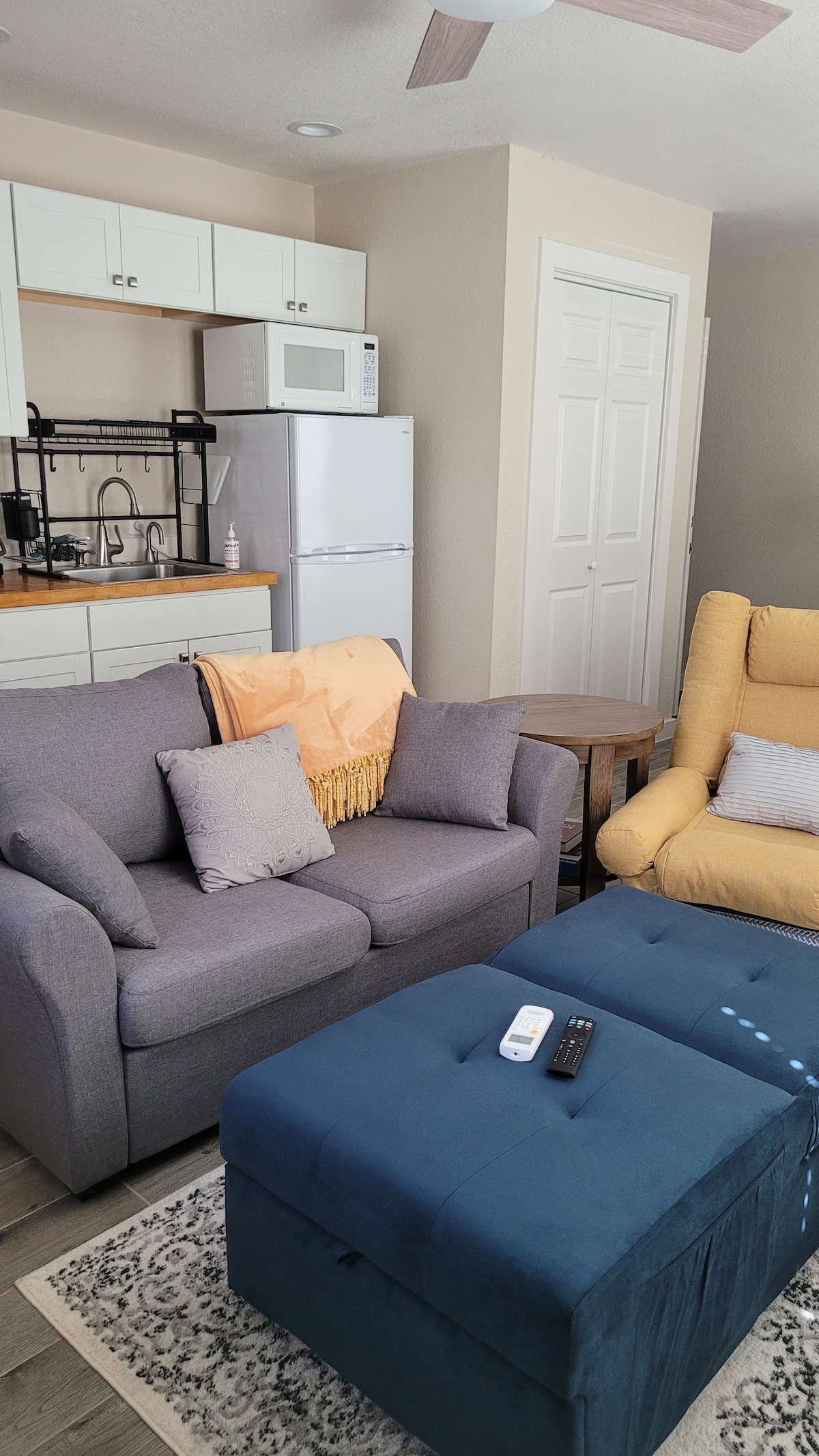 This is a private casita guest room with a separate, independent entrance located in a quite neighborhood just minutes to Lake Travis. The casita features a complete bedroom suite (queen bed) and entertainment center, dining table and chairs, small kitchenette (microwave, coffee station, sink, and mini-refrigerator), large closet space, multitude of windows to view the sunrise and the beauty of the outdoor landscaping, outdoor table and chairs for guest enjoyment, and a dedicated parking space.