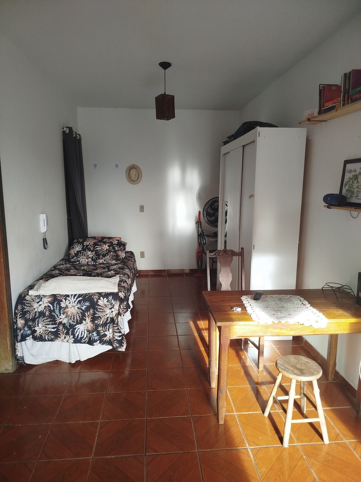 Kitnet econômica e confortável — ideal para quem quer economizar! Se você busca um espaço simples, funcional e com ótimo custo-benefício, esta kitnet é perfeita. O ambiente conta com cama de casal, estacionamento para um carro pequeno, guarda-roupas, frigobar, cozinha equipada para refeições rápidas e banheiro. É um espaço compacto, bem organizado e pensado para quem deseja uma estadia prática, pagando pouco e com total privacidade. Ideal para viagens curtas, trabalho ou descanso.