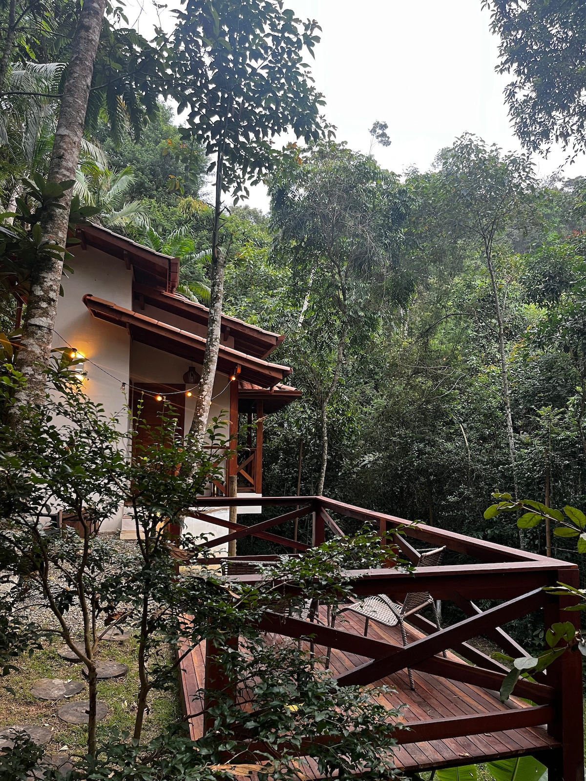 Sítio Reichart feels like a true nature retreat — perfect for who appreciates peace in a family-friendly setting. The charming wooden chalet has a cozy living/dining area with a bathroom and upstairs a bedroom. Just 21 minutes from Marechal Floriano and 36 from Domingos Martins. Set within tropical forest, the property features a spacious lawn, a fish pond, natural swimming pool, pool table, barbecue area, and other amenities that create the perfect setting for relaxing days in nature.