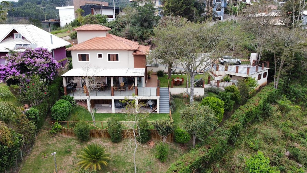 Casa privativa nas montanhas capixabas, com vista para a Pedra azul. Composta por: - 6 quartos, sendo 5 suítes (não oferecemos roupas de cama e banho, temos a opção do serviço mediante pagamento de taxa extra a ser combinado após a reserva via chat) - Aquecedor portatil - Banheiro Social - Cozinha Gourmet com utensílios de cozinha - Sala de estar com tv - Vaga de Garagem - Sala de Jantar - Área Gourmet - Mobília básica - Pontos turísticos , cervejarias e conveniências próximo. - Wi-fi