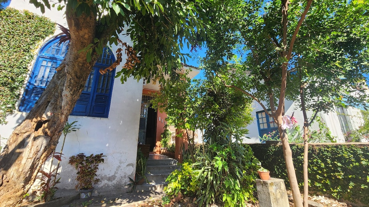 No bucólico bairro de Sta. Teresa, em muito arborizado terreno de 1000m² sobre dois níveis, no inferior se situam 2 unidades totalmente independentes que dividem jardim e piscina: Este Studio e o Ap (outro anuncio). Com vista do Cristo (Corcovado), montanha e Sambódromo (desfiles de Carnaval), estamos defronte a antiga igrejinha e ao lado de pracinha familial c/ bistrôs. Em casarão colonial e acesso independente, no platô superior residem os proprietários, sempre disponíveis para uma ajuda.
