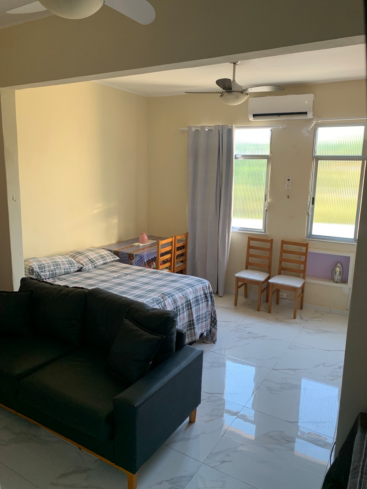 Super aconchegante, é melhor custo-benefício. Recém reformado, com excelente acabamento e estrutura, com conforto para 4 pessoas. Central, rua segura, com guardião fixo 24h, ao lado do metrô Pres. Vargas e do VLT, tem fácil acesso aos principais pontos turísticos, museus, Lapa, Sapucaí e praias da Zona Sul e Barra. Ótimo para compras, negócios, congressos, e eventos WI-FI, Smart TV, ar condicionado nos quartos, secador de cabelo e ferro de passar. Consultar checks in e out em horário diferente.