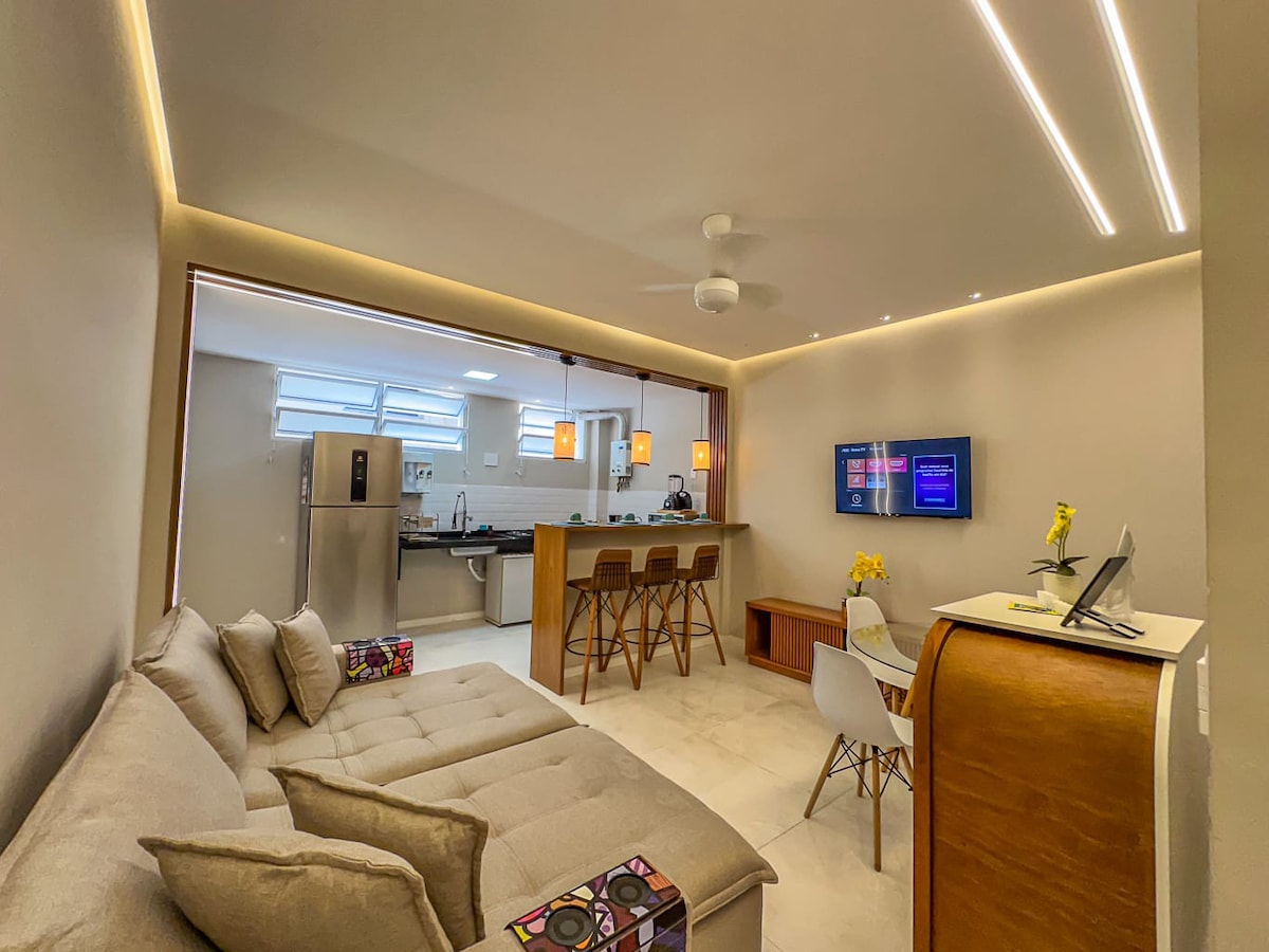 Conforto elegante, localização estratégica e lazer completo. No Centro Cultural do Rio. Tranquilo com requinte e conforto. Bem-localizado em Cultura e Gastronomia. Cuidadosamente preparado para uma estadia acolhedora e funcional. 🛏️ Camas • Quarto: 1 cama de casal, ideal para 2 hóspedes • Sala: 1 sofá-cama queen, acomodando até 2 hóspedes 🧡 Capacidade até 4 hóspedes, conforme acima. ☕ Adicional • Espumador de leite Aeroccino (mediante solicitação)
