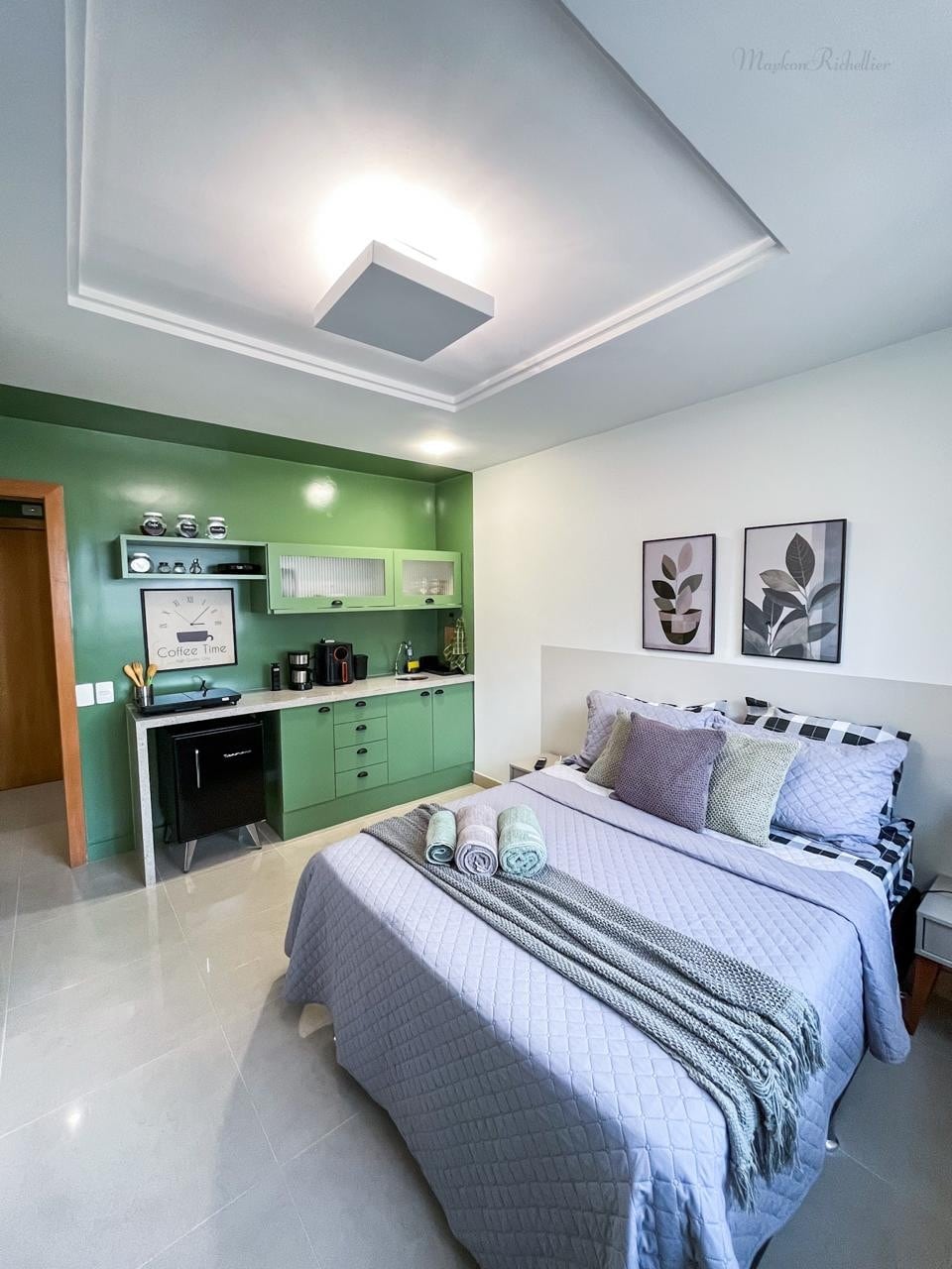 Conforto elegante, localização estratégica e lazer completo. Tranquilo com requinte e conforto. Bem-localizado, cuidadosamente preparado para uma estadia acolhedora e funcional. 🛏️ Camas • Quarto: 1 cama de casal, ideal para 2 hóspedes • Sala: 1 sofá-cama queen, acomodando até 2 hóspedes • Criança: colchão infantil para bebê de até 3 anos (disponível mediante solicitação na reserva) 🧡 Capacidade até 4 hóspedes, conforme acima. ☕ Adicional • Espumador de leite Aeroccino (mediante solicitação)