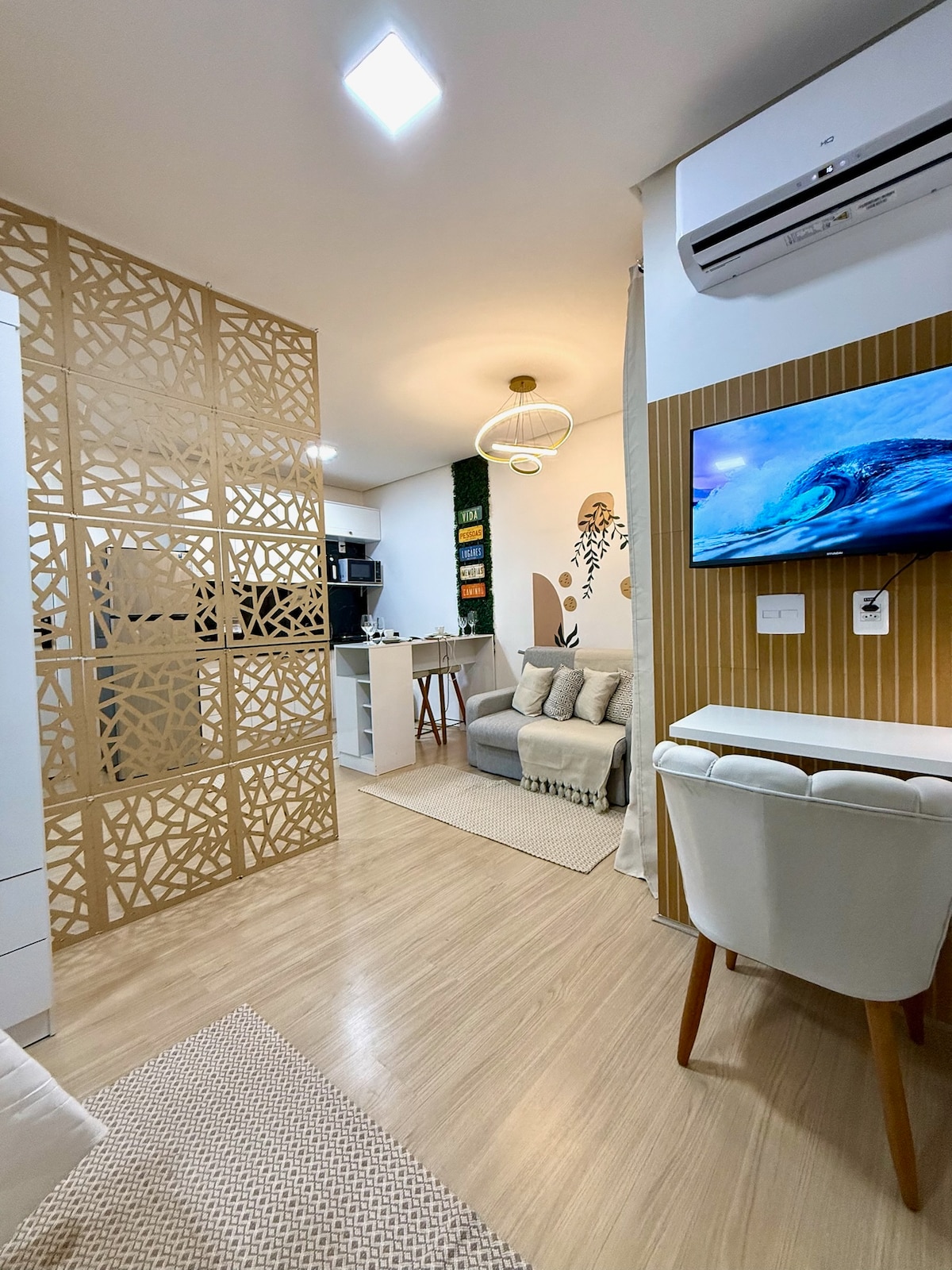 Conforto elegante, localização estratégica e lazer completo. Tranquilo com requinte e conforto. Bem-localizado. Cuidadosamente preparado para uma estadia acolhedora e funcional. 🛏️ Camas • Quarto: 1 cama de casal, ideal para 2 hóspedes • Sala: 1 sofá-cama queen, acomodando até 2 hóspedes • Criança: colchão infantil para bebê de até 3 anos (disponível mediante solicitação na reserva) 🧡 Capacidade até 4 hóspedes, conforme acima. ☕ Adicional • Espumador de leite Aeroccino (mediante solicitação)