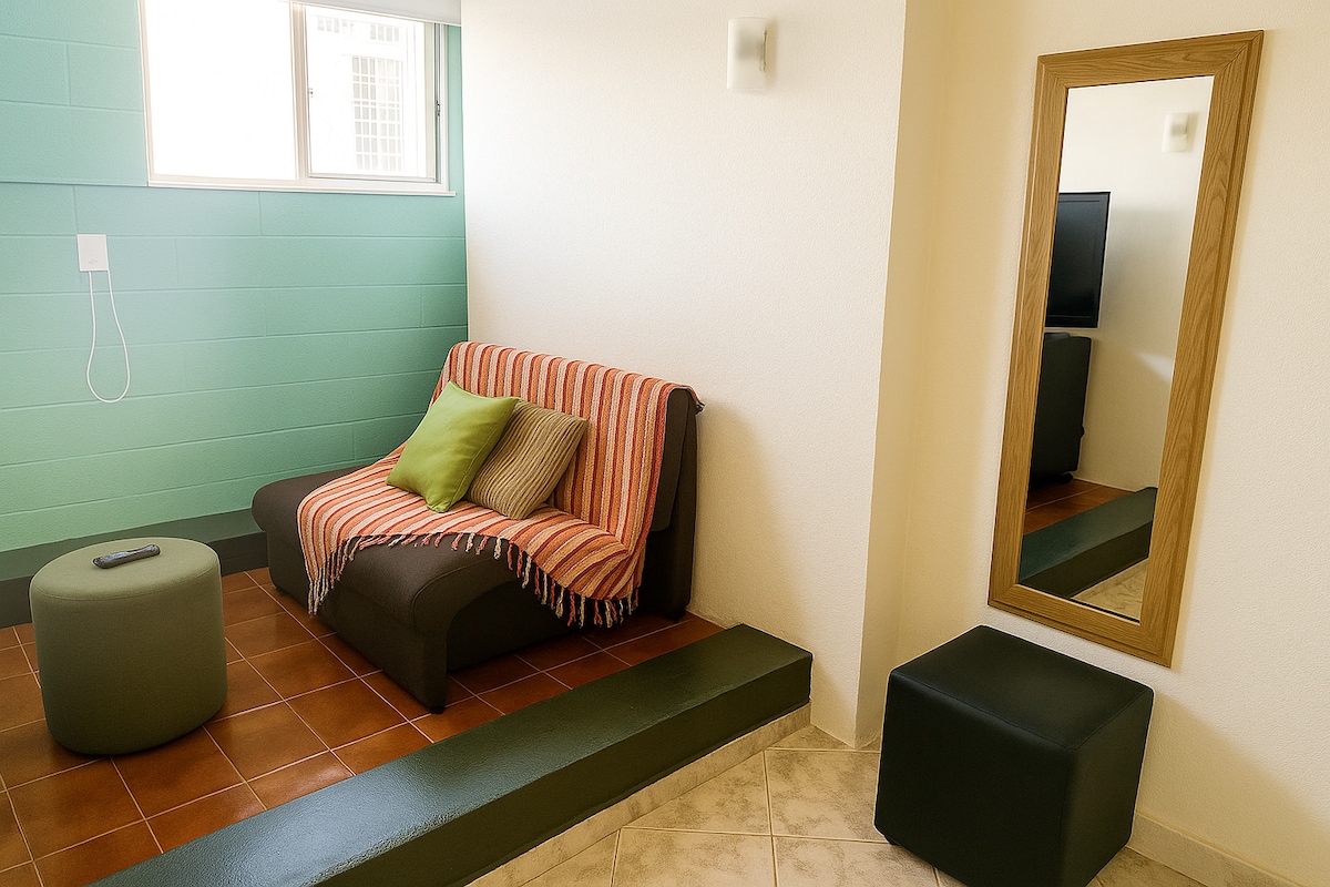 Espaço inteiro. O apartamento é amplo, aconchegante, organizado, bem arejado e iluminado, com sol da manhã. No quarto, há uma cama queen (euro colchão super premium) e um closet espaçoso. A sala é grande, com mesa de jantar, sofá-cama (casal) e uma varanda com plantas e rede. A cozinha é completa, equipada com todos os utensílios necessários. O banheiro foi reformado e possui chuveiro 220v. O ambiente conta com ar-condicionado, ventilador de teto e ventilador portátil de chão.