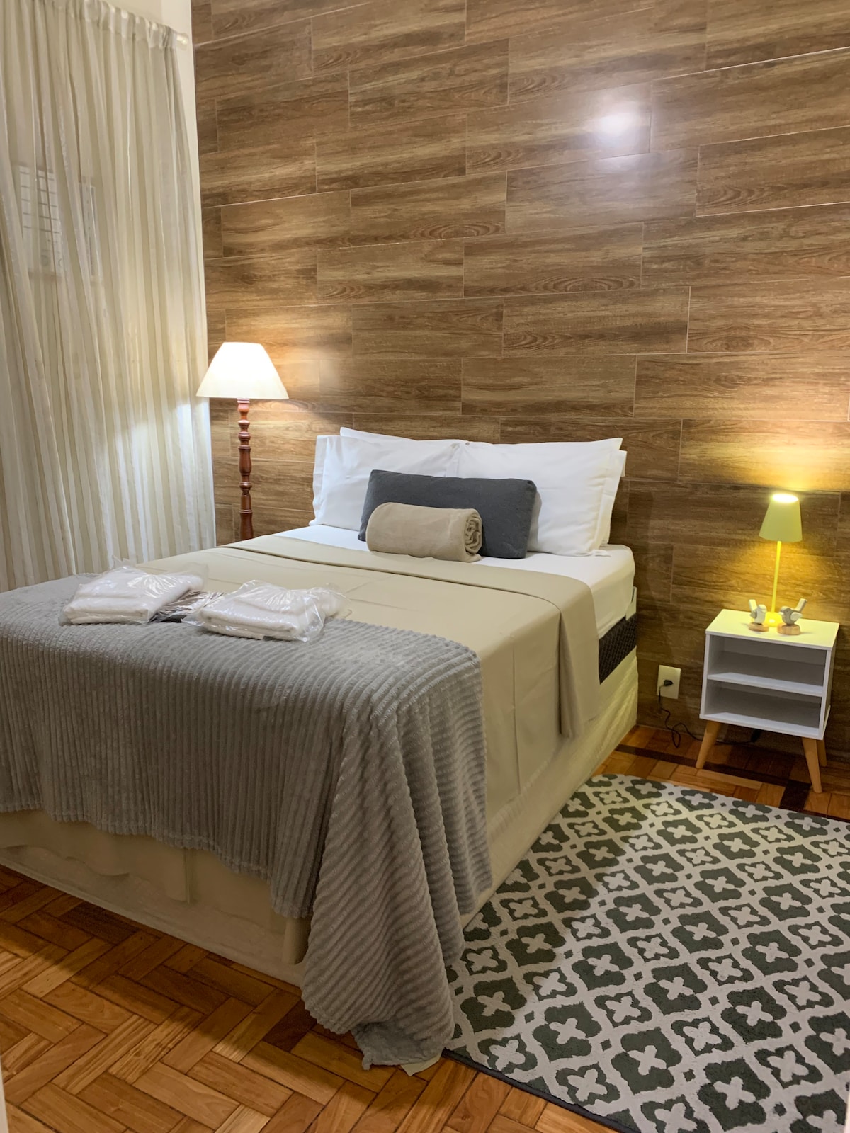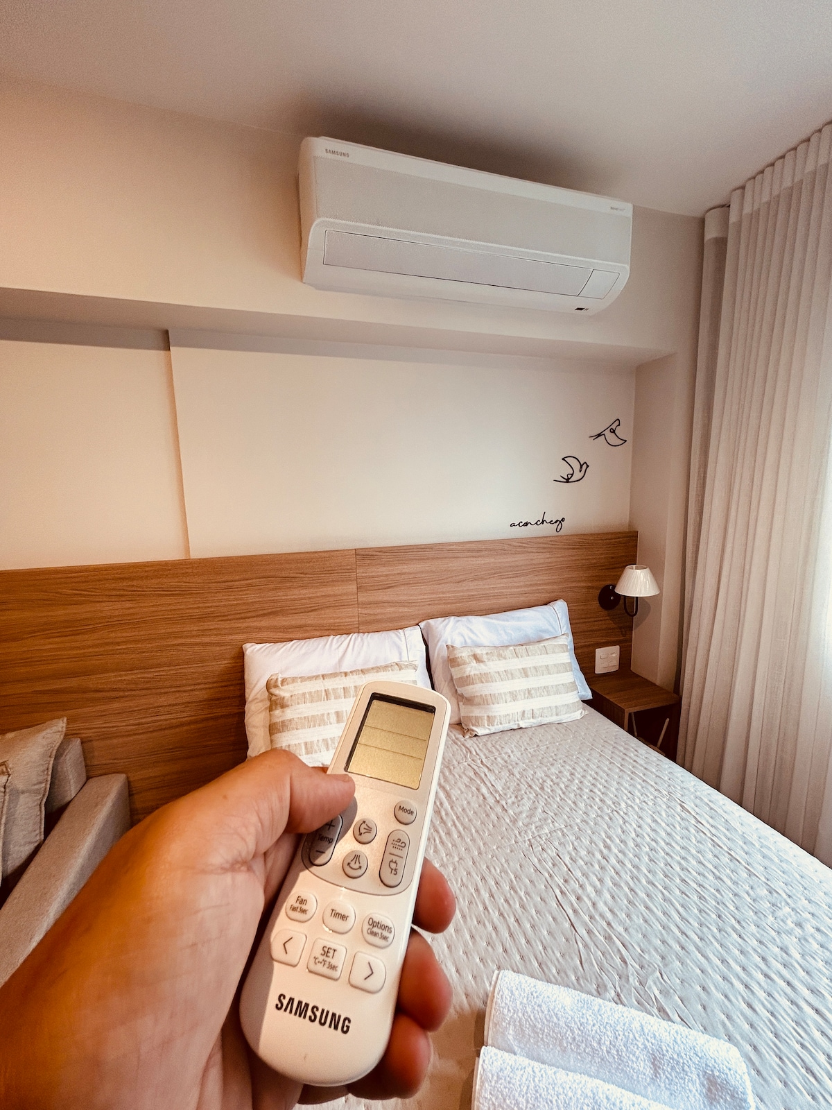 Conforto elegante, localização estratégica e lazer completo. Tranquilo com requinte e conforto. Bem-localizado. Cuidadosamente preparado para uma estadia acolhedora e funcional. 🛏️ Camas • Quarto: 1 cama de casal, ideal para 2 hóspedes • Sala: 1 sofá-cama queen, acomodando até 2 hóspedes • Criança: colchão infantil para bebê de até 3 anos (disponível mediante solicitação na reserva) 🧡 Capacidade até 4 hóspedes, conforme acima. ☕ Adicional • Espumador de leite Aeroccino (mediante solicitação)
