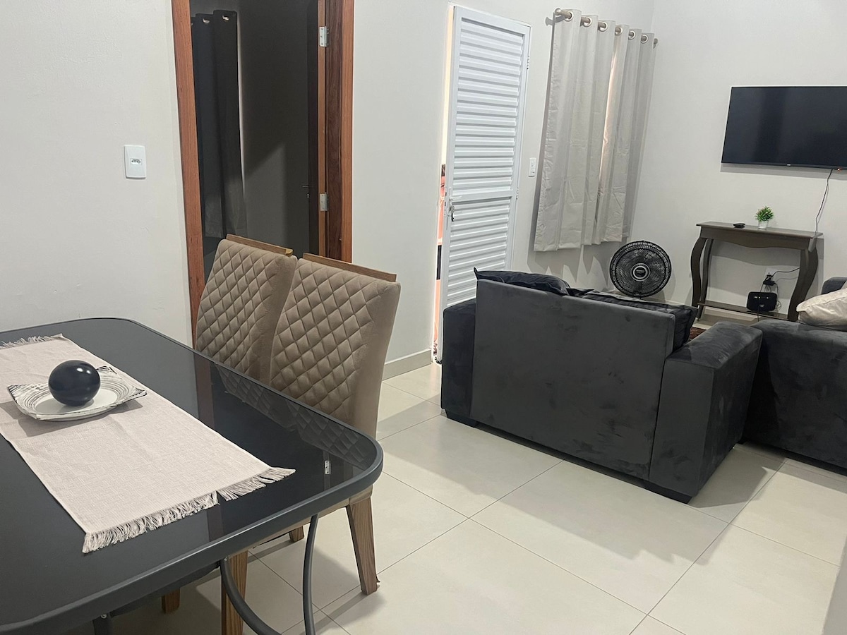 Ideal para relaxar! Ótima localização! próximo ao shopping, restaurantes , supermercados, farmácia, etc. - 1 quarto com cama de casal e ar condicionado; - 1 quarto com 1 colchão de casal, 1 colchão de solteiro, 1 mesa para trabalho e ventilador de teto; - 1 banheiro com chuveiro elétrico; - Sala com sofá, ar condicionado, TV 42' e mesa de jantar; - Cozinha com fogão, geladeira e utensílios. - Internet wi-fi e garagem para 01 carro. Abrace a simplicidade neste lugar tranquilo e bem-localizado!