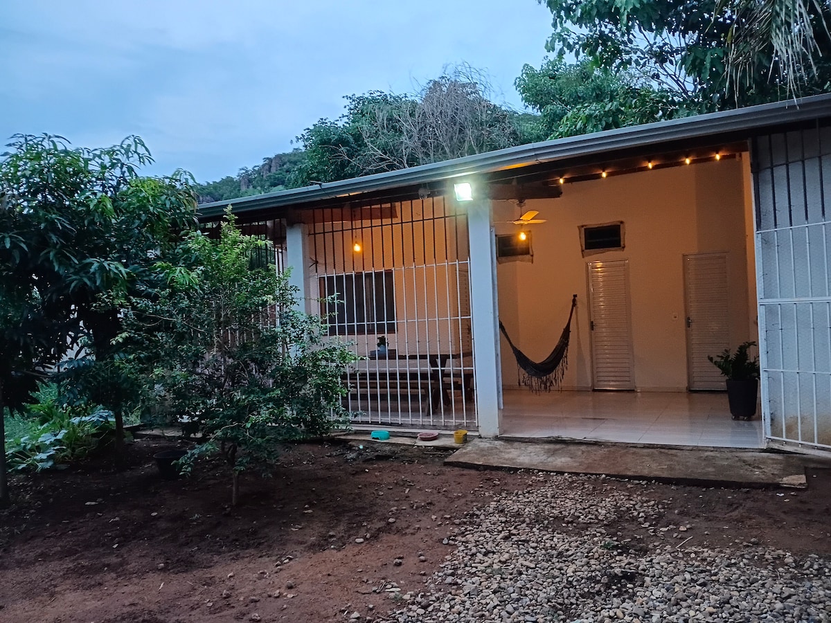 Esqueça de suas preocupações neste lugar espaçoso e tranquilo. 01 CAMA DE CASAL; 01 CAM SOLTEIRO; 02 BANHEIROS 01 C/ CHUVEIRO ELÉTRICO; 01 CHUVEIRO EXTERNO; ÁREA COBERTA COM VENTILADORES; QUARTO C/ AR CONDICIONADO; CHURRASQUEIRA COM GRELHA; FOGÃO 2 BOCAS C/ BOTIJÃO; FREEZER; GELADEIRA; WIFI; CAMERAS DE SEGURANÇA; CERCA ELÉTRICA.