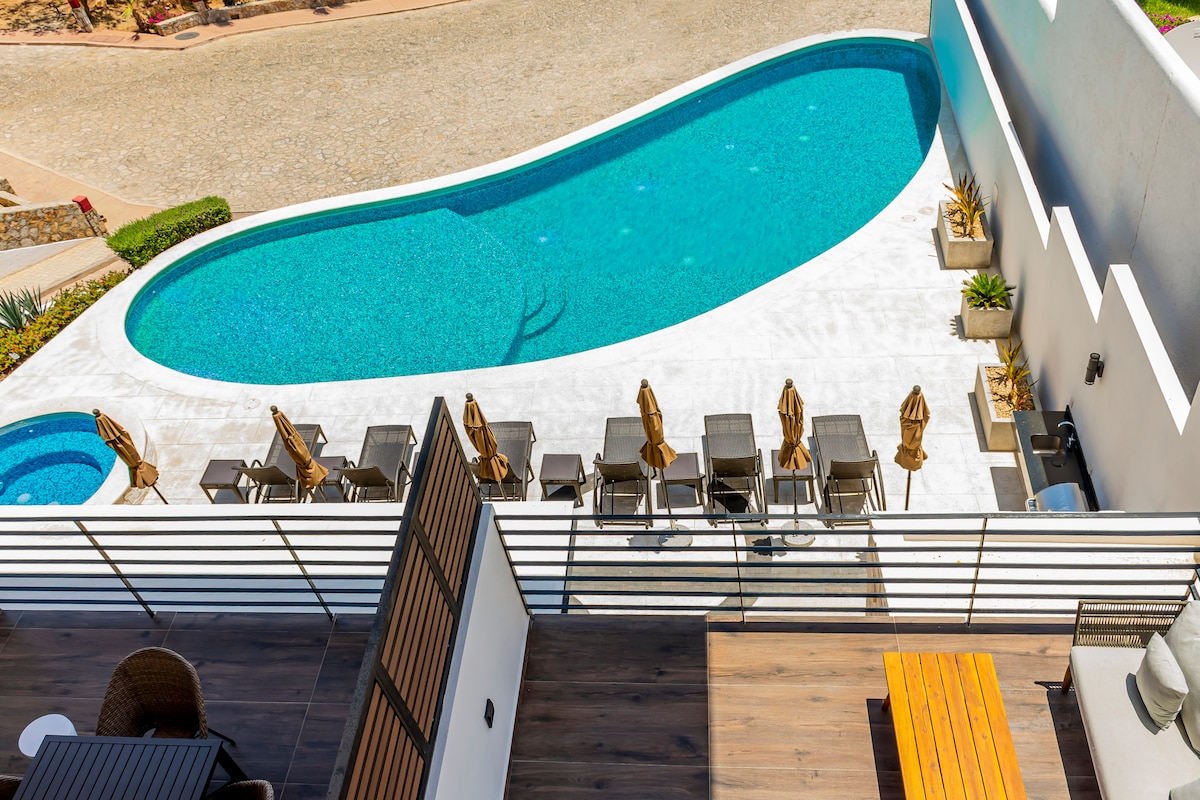 Enjoy our luxury condo with fantastic views and great attention to detail, very secure and located in the heart of Cabo San Lucas. La Vista development is carved into the rocky hillside of Pedregal de Cabo San Lucas, right in the heart of the city, where we have more fully equipped apartments, amazing views day and night, private pool, access to the exclusive Pedregal beach area and the wonderful service of our friendly staff.