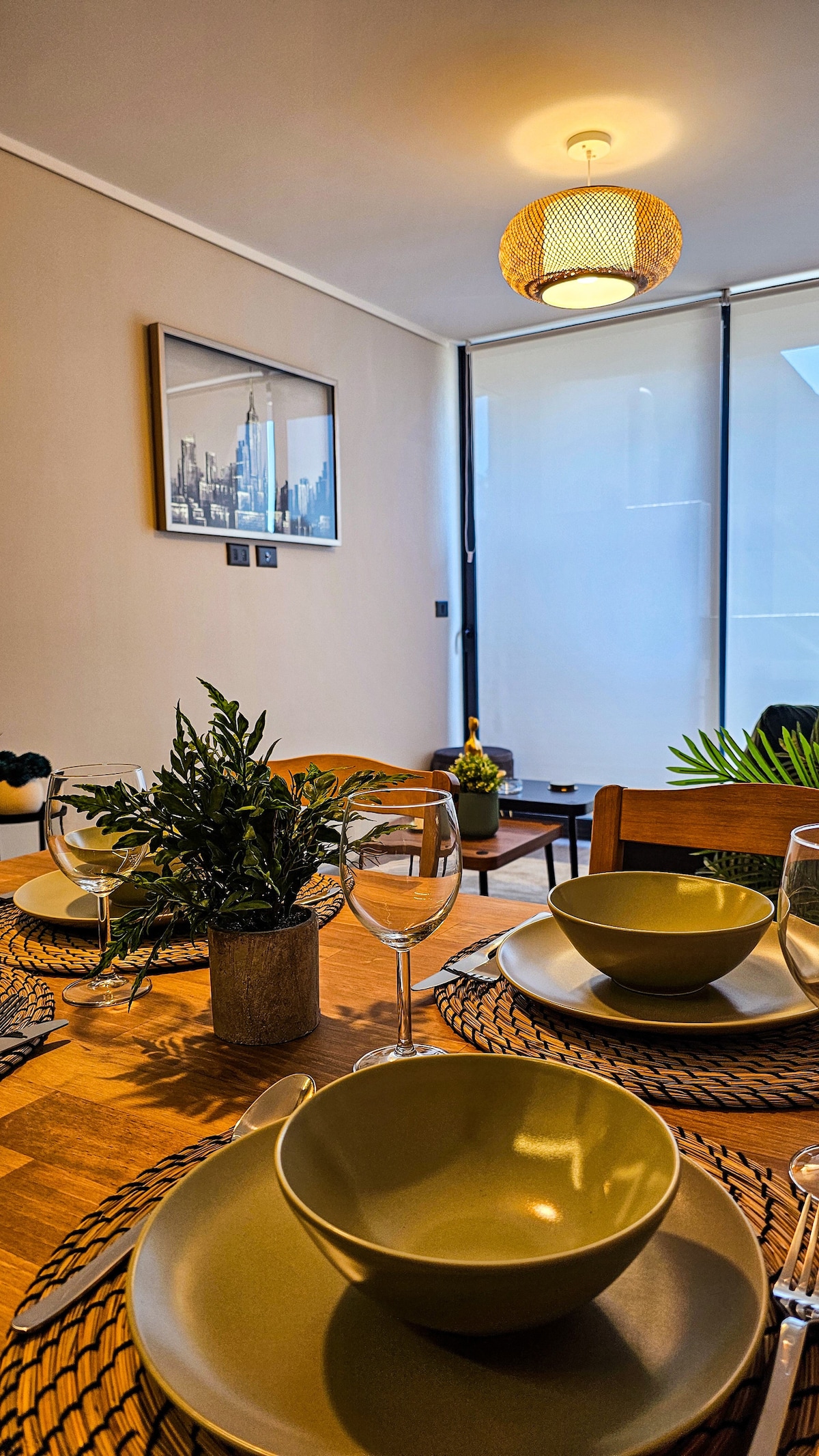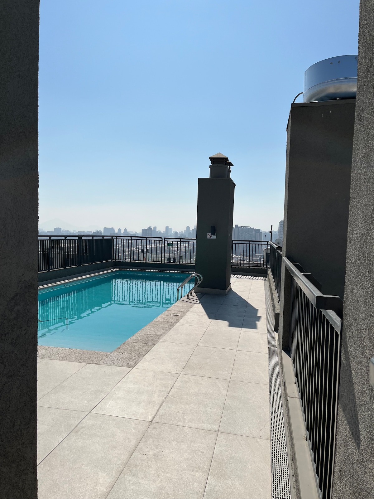 Departamento moderno y céntrico, ¡perfecto para tu estadía en Santiago! Ubicado en un tranquilo sector, disfruta de un espacio amplio y recientemente remodelado, con estacionamiento techado. A solo 30 mts. de una plaza llena de vida, con cafetería y restaurantes. El metro se encuentra a solo 5-10 minutos caminando, al igual que farmacias, bancos y carretera. El entorno del depto es muy silencioso por lo que podrá descansar perfectamente junto a todas las comodidades, TV tipo cine, netflix, etc